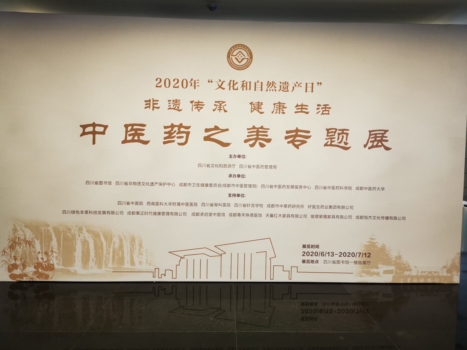 2020年6月13日,由四川省文化和旅游厅、四川省中医药管理局共同主办的2020年“文化和自然遗产日” 非遗传承 健康生活-中医药之美专题展在成都举行。我院研发的新冠1号、乾源玉露酒、苏百维尔植物饮料等中药制剂和养生产品参展,受到大家的欢迎。