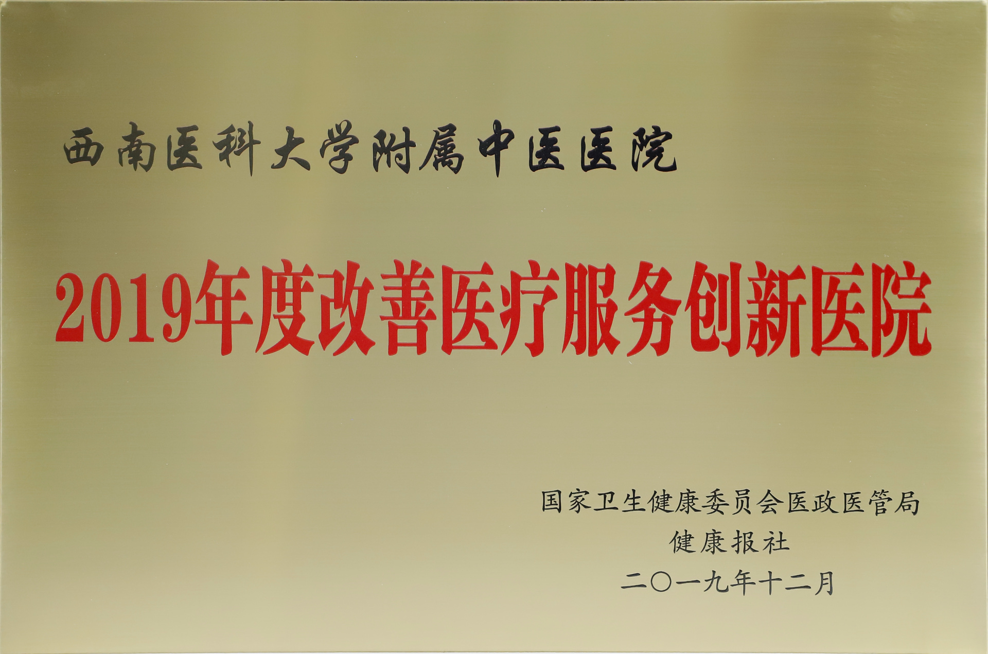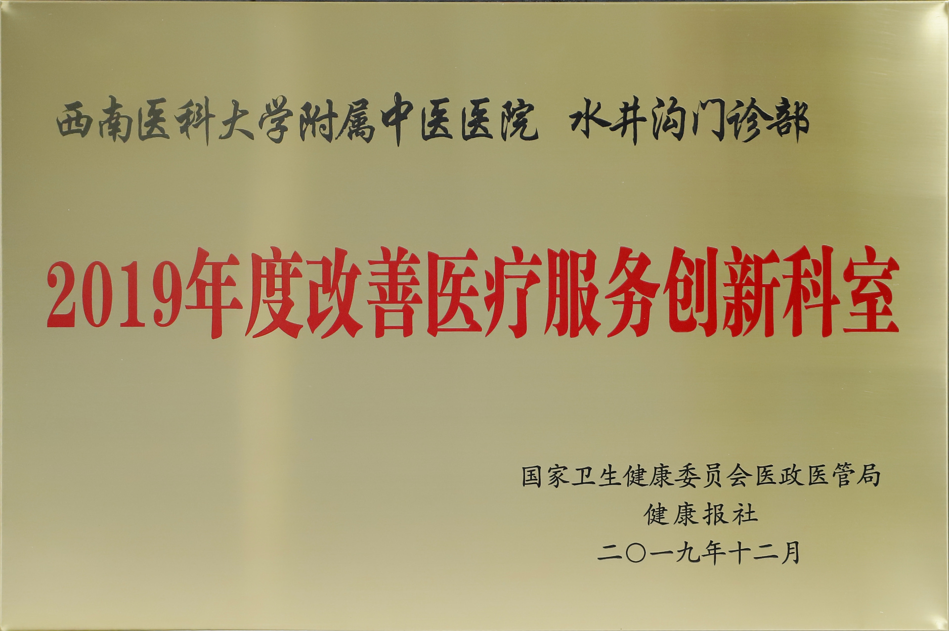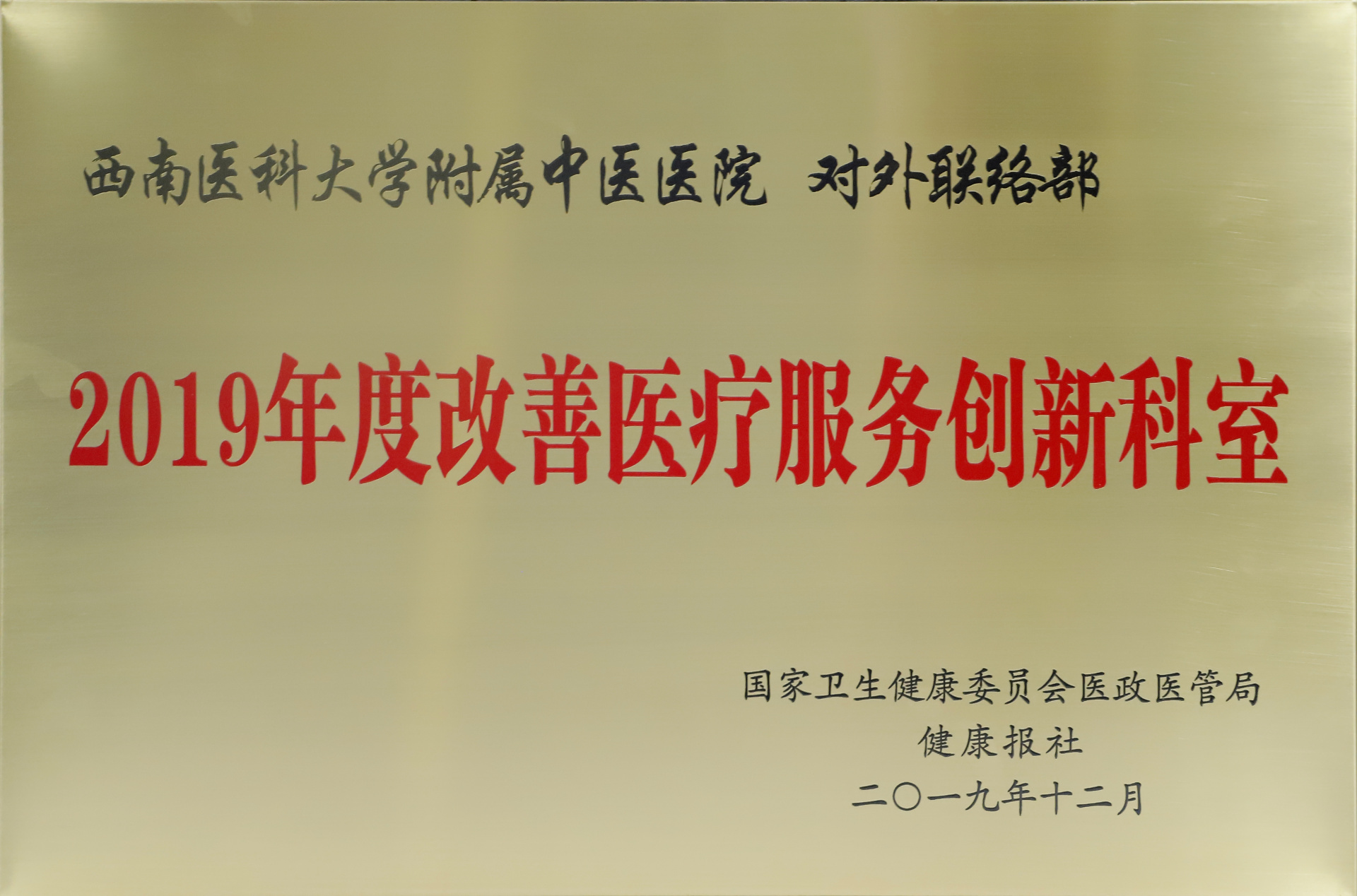 近日,国家卫生健康委员会医政医管局联合健康报社评选了2019年改善医疗服务典型案例。我院荣获“2019年度改善医疗服务创新医院”,针灸·康复科、水井沟门诊部、对外联络部荣获“2019年度改善医疗服务创新科室”。