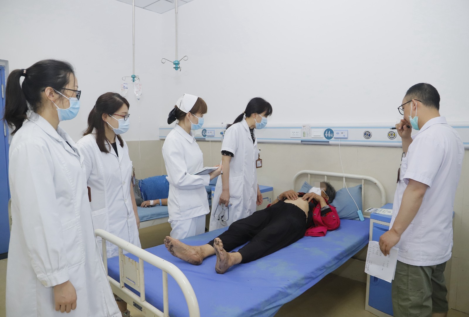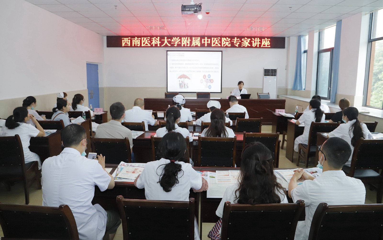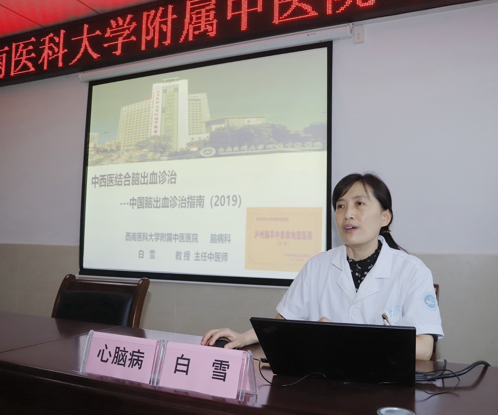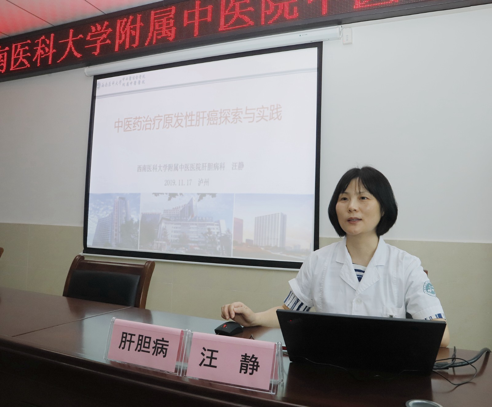 随后,大内科主任兼心脑病科主任白雪教授、大内科副主任兼肝胆病科主任汪静教授带队进行了疑难病例查房,并为丹林镇卫生院医务人员作了《中西医结合脑出血诊治-中国脑出血诊治指南(2019)》《中医药治疗原发性肝癌探索与实践》专题讲座。