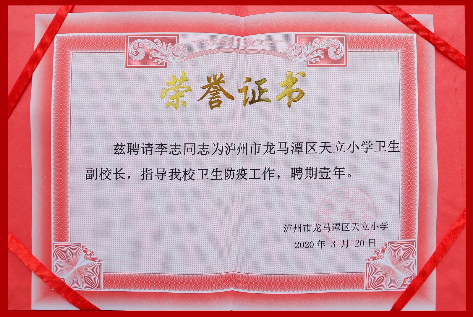 活动前,我院副院长李志受聘为天立小学卫生副校长。