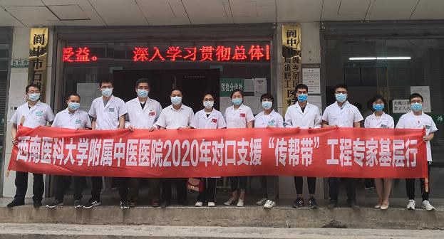 2020年5月21日,我院2020年对口支援“传帮带”工程专家联合阆中市中医医院在阆中市第二人民医院和石滩镇卫生院开展了两场义诊活动。我院心胸外科邓志刚、吴伯勋,泌尿外科赖俊谕,肛肠科成川华,手术室蒋静,麻醉科陈齐,皮肤科柳研,病理科甘中华,检验科张丹,急诊科石睿,采购供应部梁刚参与了此次活动。