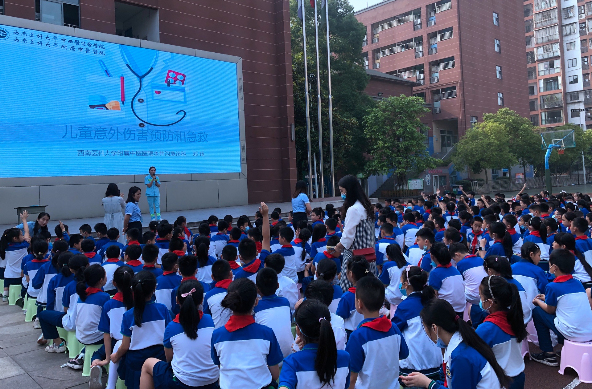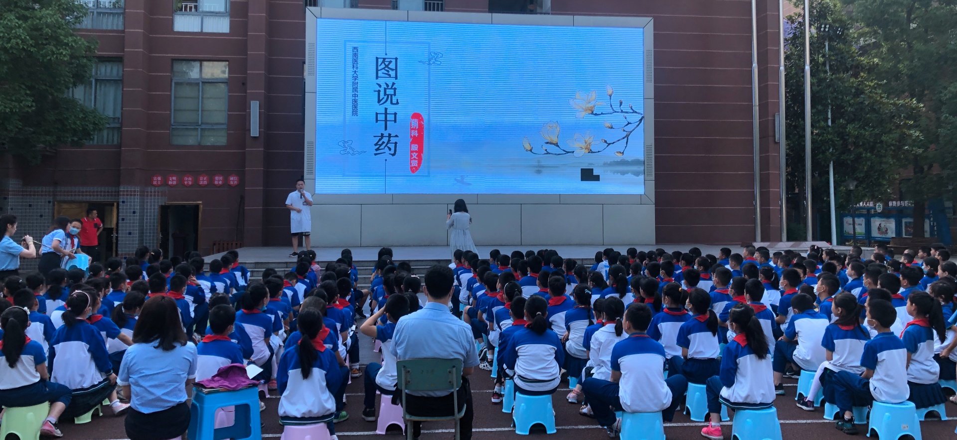 活动现场,水井沟急诊科副护士长邓钰主管护师、中药房殷文贤中药师先后作了《儿童意外伤害预防和急救》《图说中药》专题讲座,受到了全体师生的热烈欢迎。