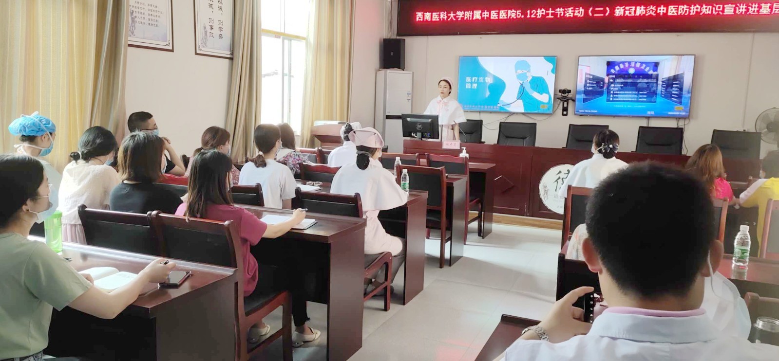 与此同时,相关医护人员深入卫生院进行专家查房和现场交流,并围绕创等级医院和《新冠肺炎中医防护知识》等作了专题讲座,受到了大家的热烈欢迎。