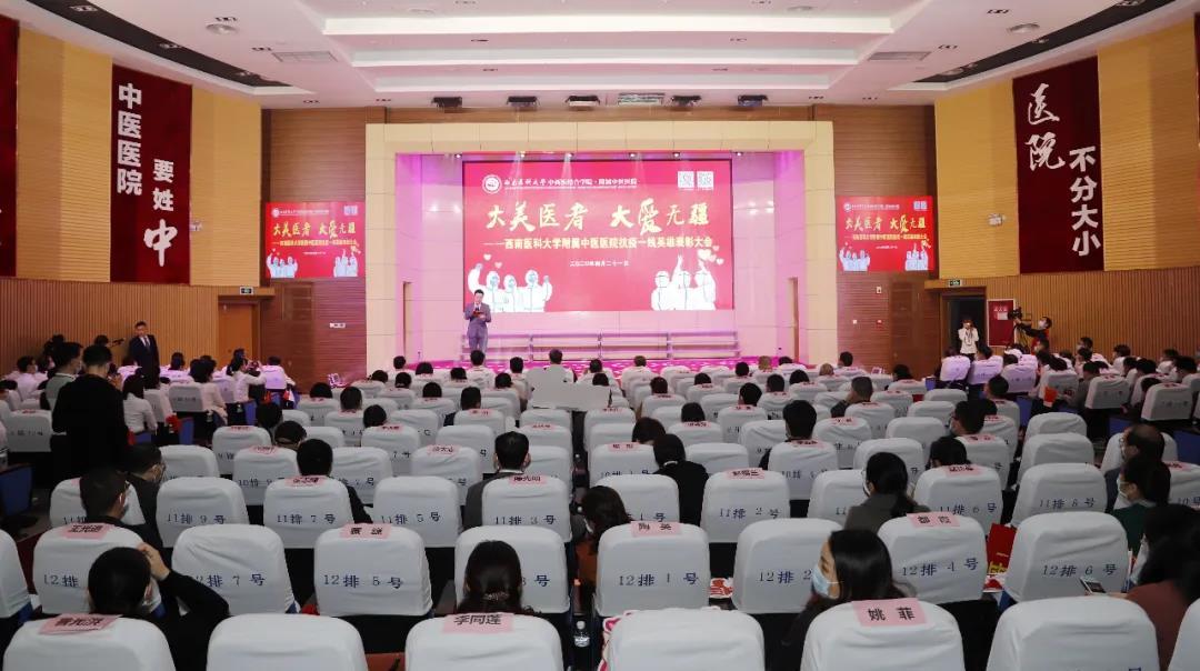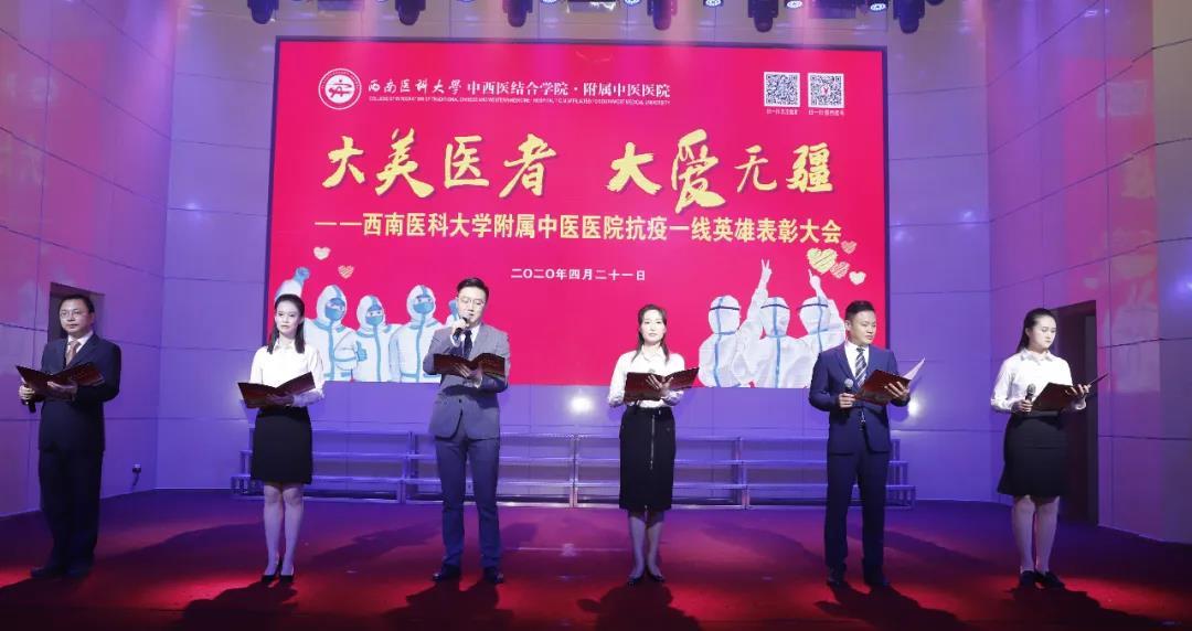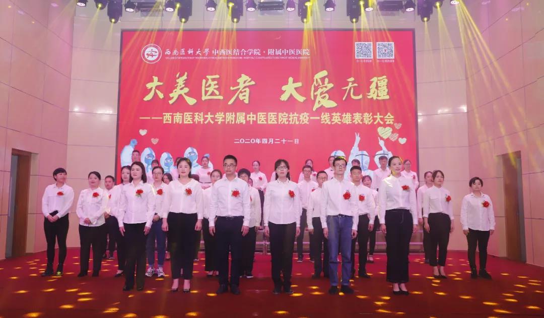 2020年4月21日,我院举行了“大美医者、大爱无疆”抗疫一线英雄表彰大会。医院支援武汉、甘孜、泸州市传染病医院43名抗疫一线医护人员及家属代表,泸州市人民政府副市长马宗慧,泸州市卫生健康委党组书记、主任涂曲平,西南医科大学党委书记廖斌,省市10余家媒体记者,我院党委书记王琳及相关职能部门、临床科室负责人等参加了表彰大会。