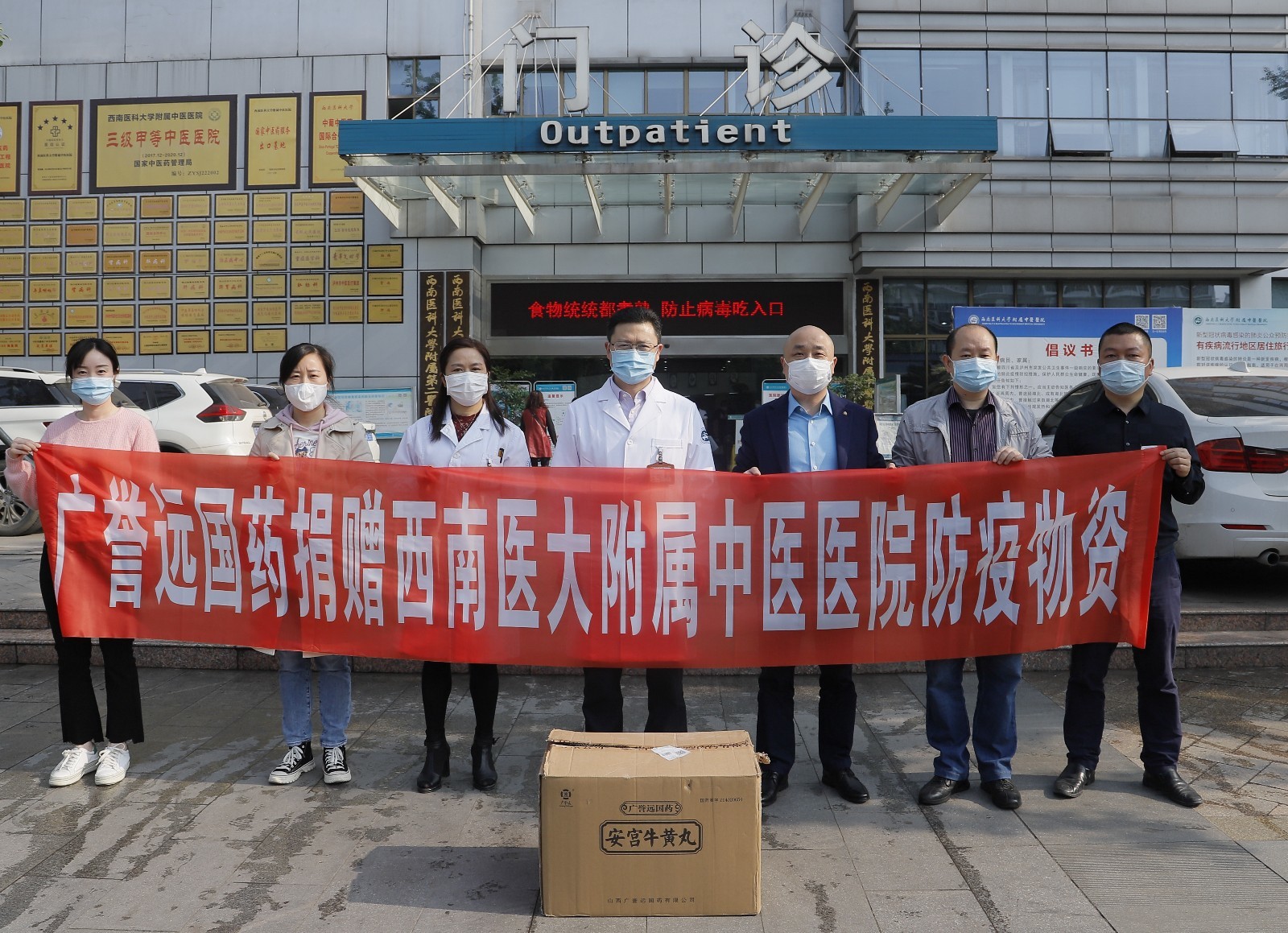 2020年4月15日,泸州华润置地商业管理有限公司和山西广誉远国药有限公司先后向我院捐赠了物资一批,我院副院长李志及相关职能部门负责人等参加了捐赠仪式。