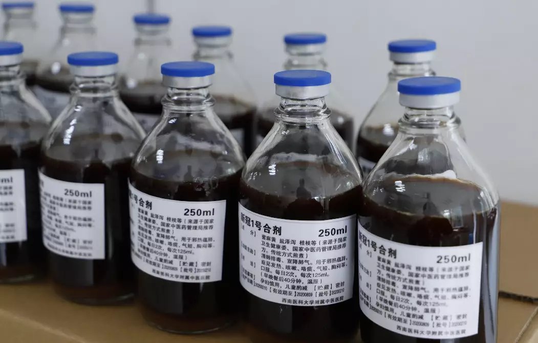 “新冠1号”是我院根据国家卫生健康委、国家中医药管理局推荐方“清肺排毒汤”成功研制而成。其主治功能是疏通三焦、清肺排毒、平喘止咳,由麻杏石甘汤、射干麻黄汤、小柴胡汤、五苓散等经典处方组合,前期临床观察疗效显著。该合剂已获得四川省药品监督局批文,并已临时纳入四川省医保支付范围,全省205家新型冠状病毒感染的肺炎定点救治医院可直接调剂使用。