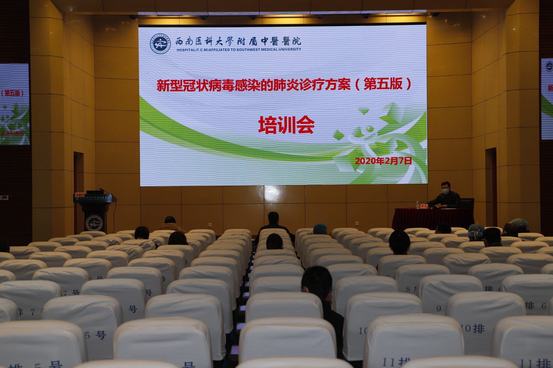 2020年2月7日,我院举行新冠病毒肺炎诊疗方案第五版培训会(全院医务人员通过视频同步直播观看培训),副院长李志,相关职能部门及部分临床科室人员参加了培训会。