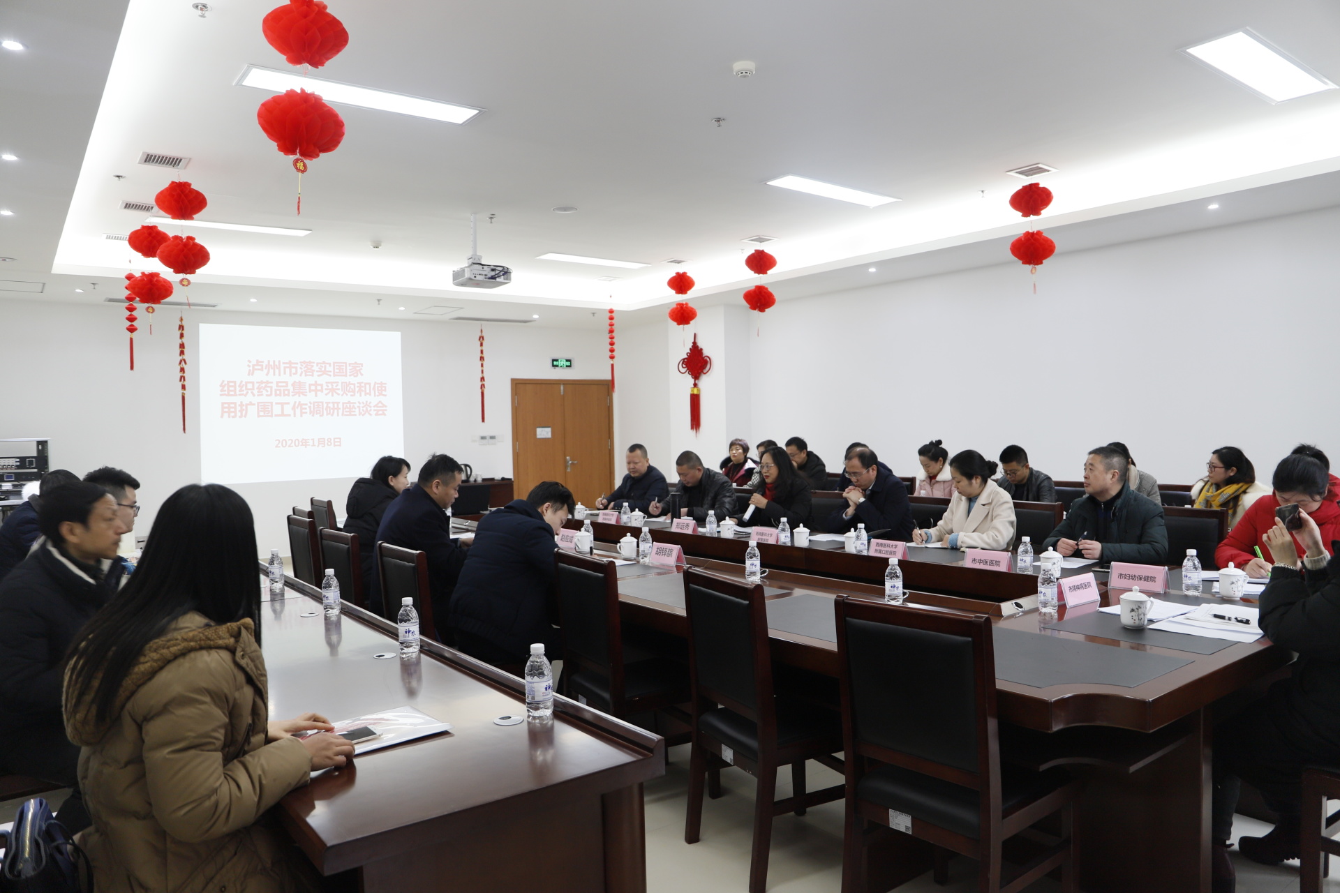 2020年1月8日,泸州市落实国家组织药品集中采购和使用扩围工作调研座谈会在我院召开。四川省药械招采中心主任赵应成、泸州市医保局药品管理科全体人员,泸州市各大公立医院分管院长及相关人员和民营医院代表30余人参加了会议,会议由泸州市医保局副局长郑远秀主持。