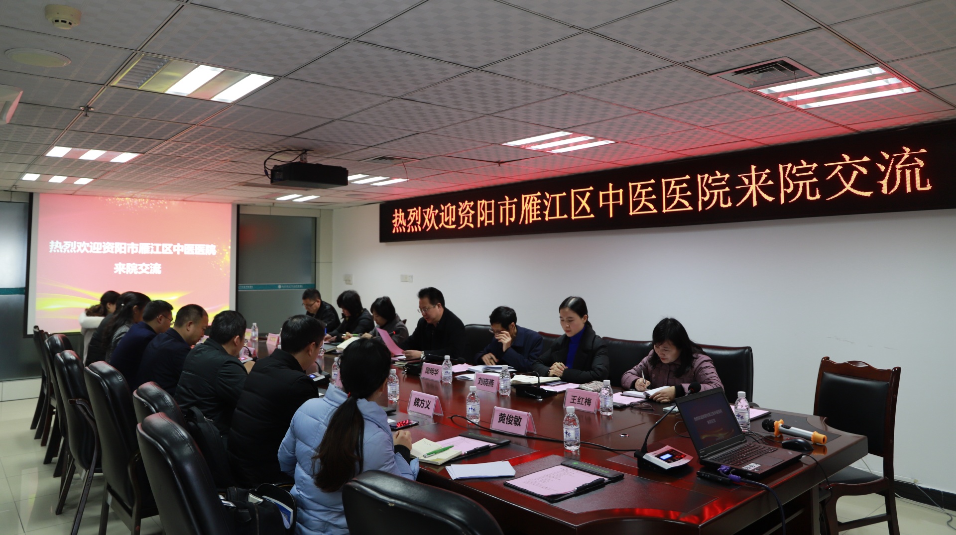 2020年1月3日,资阳市雁江区中医医院党委书记侯锡斌、院长程宏斌一行来院交流,我院相关职能部门负责人等参加了座谈会。