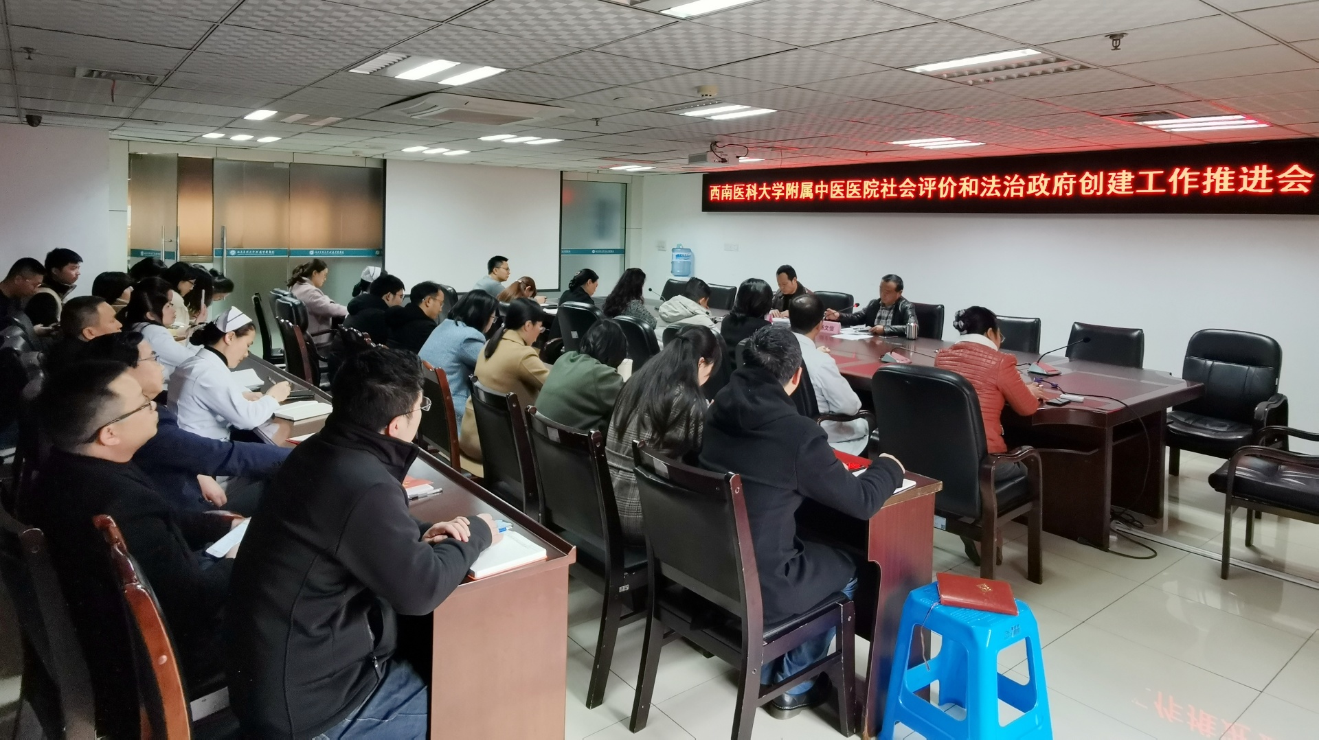 2019年12月11日,我院召开了社会评价工作和法治政府创建工作推进会,党委副书记兼纪委书记赵国强、党委副书记杨文信、全体职能部门负责人及党支部书记50余人参加了本次会议。会议由赵国强主持。