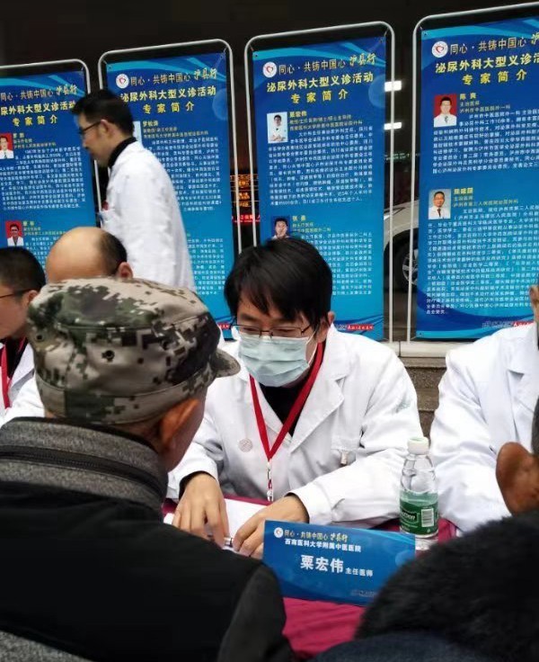2019年12月14日,我院大外科主任兼泌尿外科主任粟宏伟教授,泌尿外科主任助理罗松涛副教授、熊星护师、杨佳丽护师到泸县第二人民医院开展了“同心共铸中国心 专家走基层”联合义诊活动。