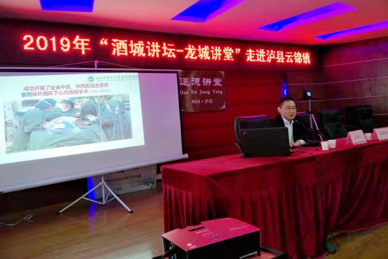 2019年11月20日,“酒城讲坛·龙城讲堂”走进泸县云锦镇,我院院长助理徐厚平博士受邀为70余名社区居民作了《健康自我管理》专题讲座,他从高血压、糖尿病等疾病的健康管理及如何做好健康等方面作了详细讲解,受到大家的热烈欢迎。