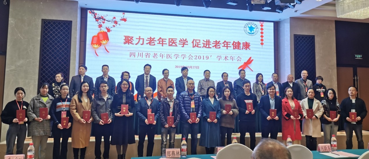 2019年10月27日,四川省老年医学学会2019 年度学术年会在成都召开。我院心脑病科副主任江云东教授撰写的论文荣获一等奖;大内科副主任潘洪教授,治未病中心副主任董丽博士,中医表型组学研究中心王小强撰写的论文荣获三等奖;心脑病科副主任罗钢副教授、刘天助博士,胥青梅主治医师,李双阳医师,研究生刘孟楠撰写的论文荣获优秀奖。