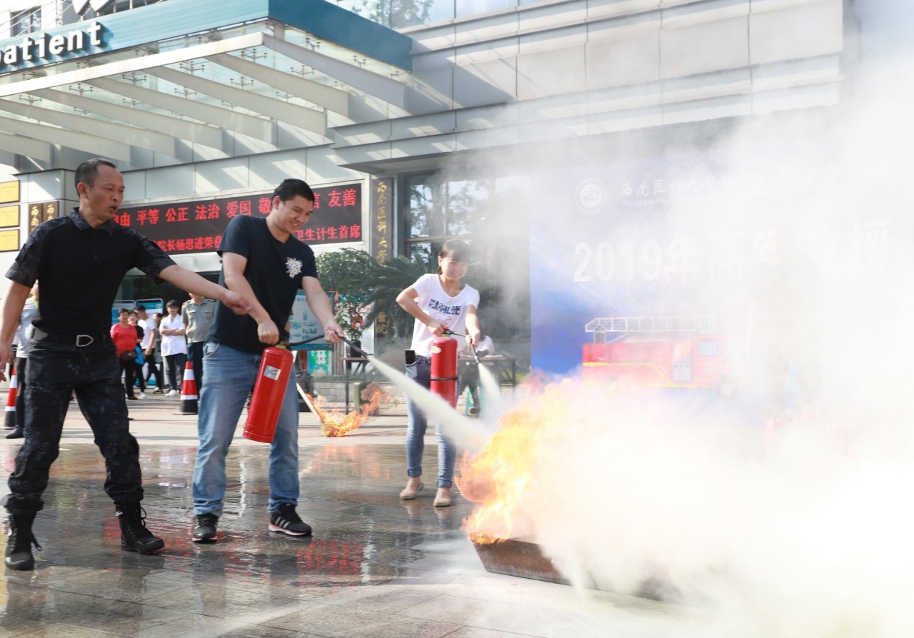 随后,医院保卫人员模拟火情与巨洋酒店微型消防站联合开展应急拉练,工作人员现场讲解了如何使用干粉和二氧化碳灭火器。