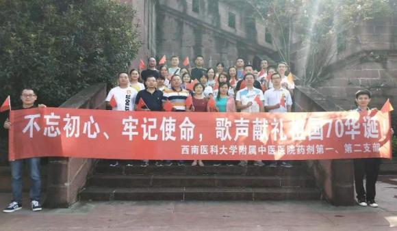 2019年9月22日,我院药剂第一、第二党支部在龙透关广场开展了“不忘初心,牢记使命,歌声献礼新中国成立70华诞”主题活动,党委书记王琳及药剂第一、第二党支部成员参加了活动。
