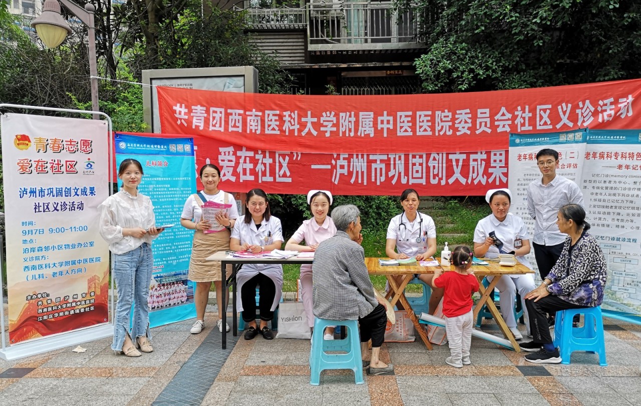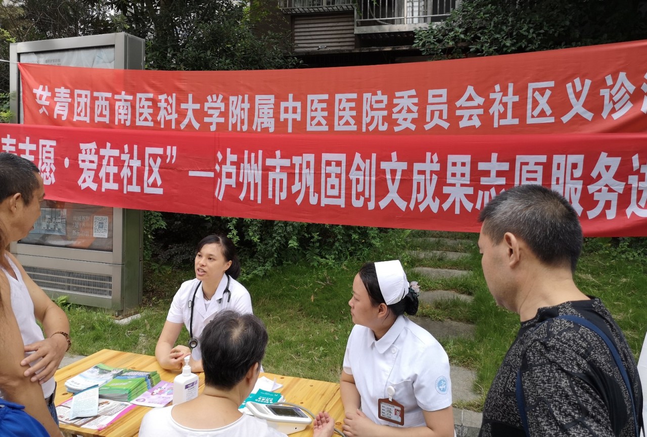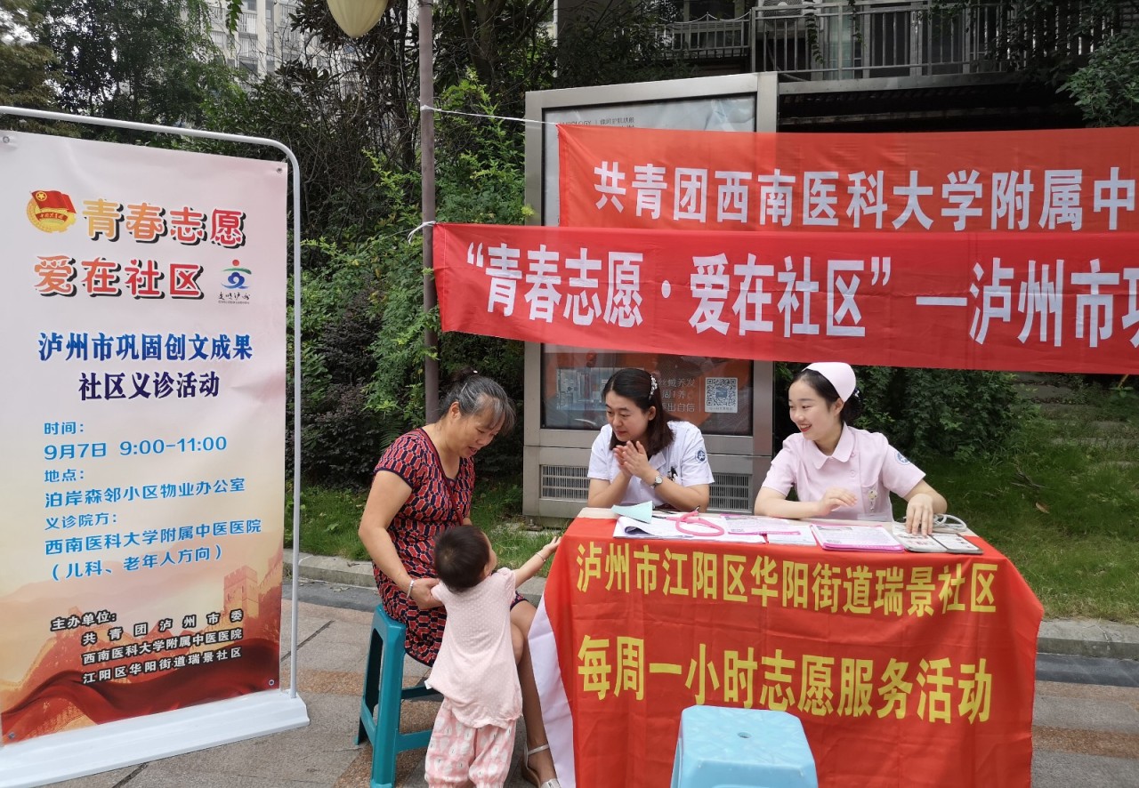 2019年9月7日,我院团委组织儿科、老年病科医护人员到江阳区华阳街道瑞景社区泊岸森邻小区开展了“青春志愿•爱在社区”义诊活动。