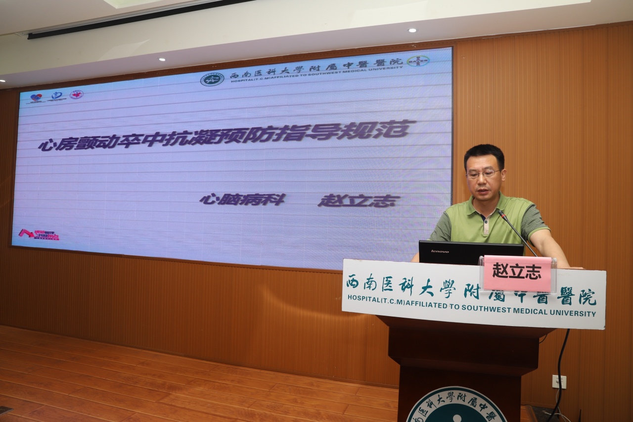 医务部部长刘鹏解读了房颤中心主要岗位设置、职责及科室分工等;房颤中心副主任、大内科兼心脑病科主任白雪教授通报了房颤中心建设背景及相关工作要求;房颤中心副主任赵立志副教授作了《心房颤动卒中抗凝预防指导规范》专题培训。