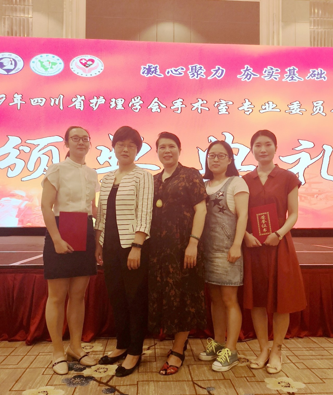2019年9月4日—6号,由四川省护理学会主办的2019年四川省手术室护理年会在成都举行。我院手术室护士长罗江勤当选第一届四川省手术室护理学会麻醉护理学组组员,手术室副护士长杨雪的论文《在手术室护理管理中应用风险管理意识效果分析》荣获大会三等奖,手术室护士李玉梅演讲的《一例改良俯卧位在经皮肾镜手术中的应用》荣获比赛一等奖。