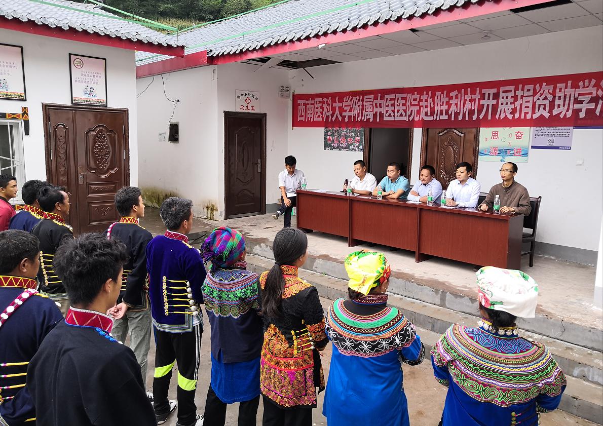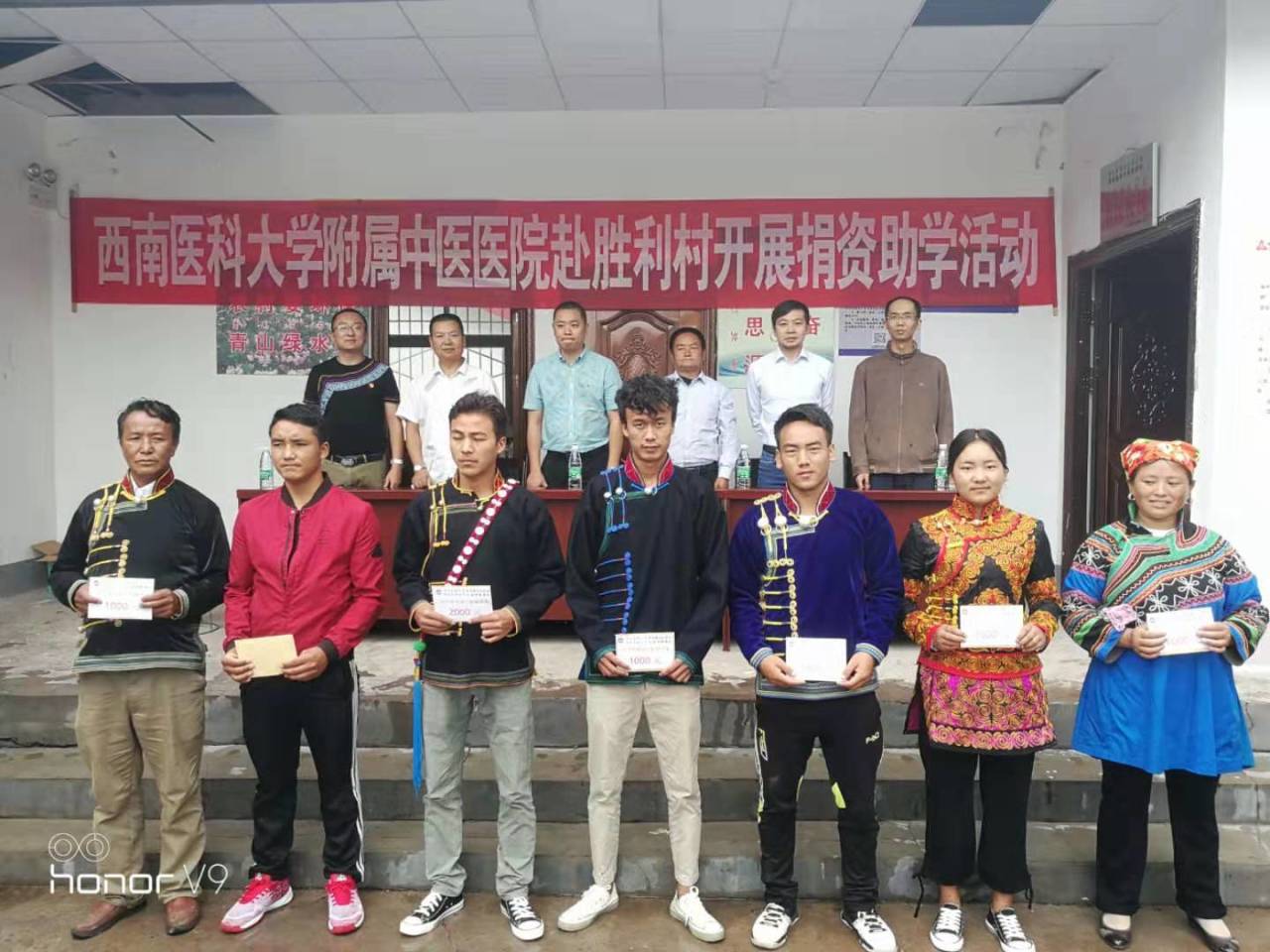2019年8月29日,我院2019年栋梁工程助学金发放仪式在凉山州普格县胜利村民俗文化广场举行。泸州市龙马潭区对口帮扶普格县前方指挥部副指挥长、县委办副主任周德斌,县委宣传部副部长张启泉,我院下派至胜利村第一书记周勉及帮扶队队员左小波、钱浩,胜利村今年考上大学的7名学生等参加了仪式。