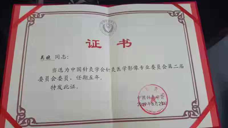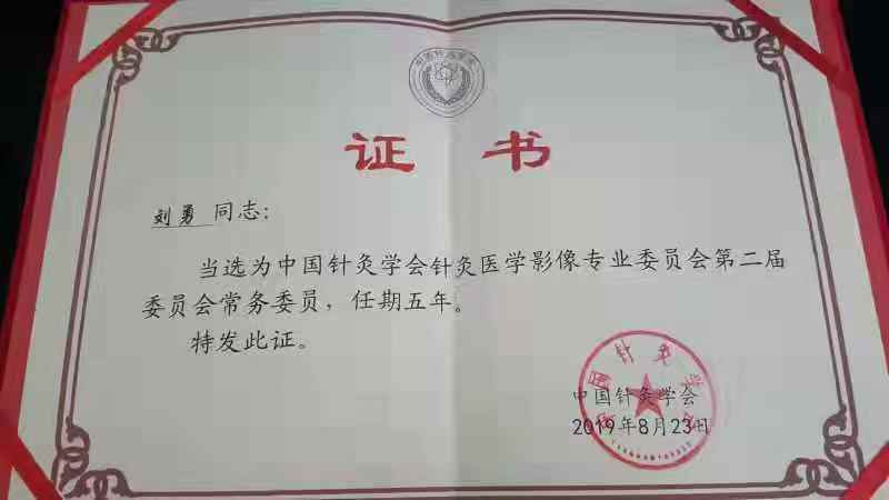 同时,刘勇教授当选为中国针灸学会针灸影像专委会第二届委员会常务委员,针灸·康复科副主任吴晓副教授当选为委员。