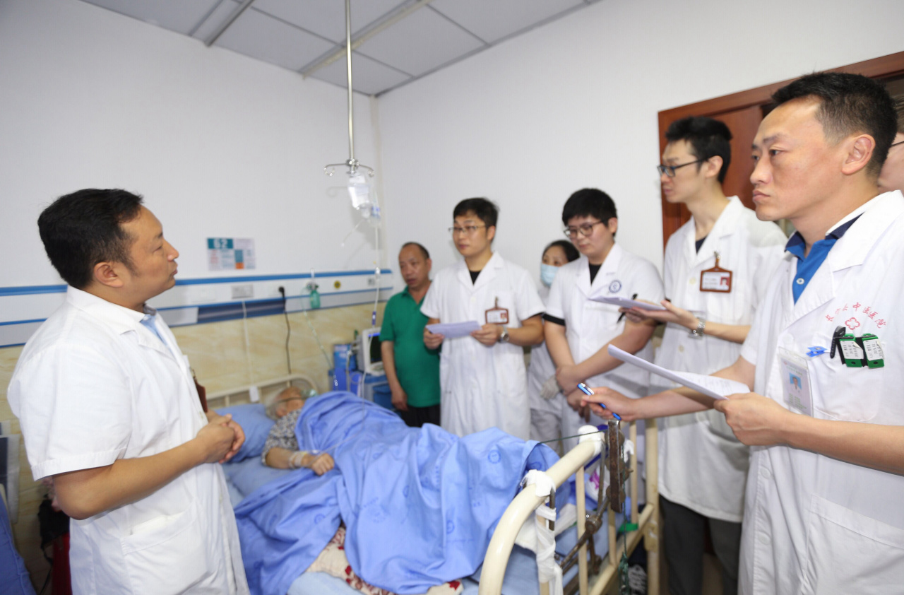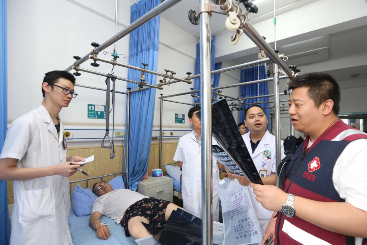 2019年6月23日,我院长宁地震医疗救援队马川教授带领瞿刚波主治医师、邓凯主治医师、罗小欢护师在长宁县中医医院查房,评估手术患者情况,完善相关术前准备;杨翰主治医师在急诊科协助分诊;王恩成主治中医师为患者把脉诊断,开具中药处方;贺智榆医师、杨俊主治医师分别在长宁县人民医院和宜宾市第二人民医院长宁安宁分院查房。