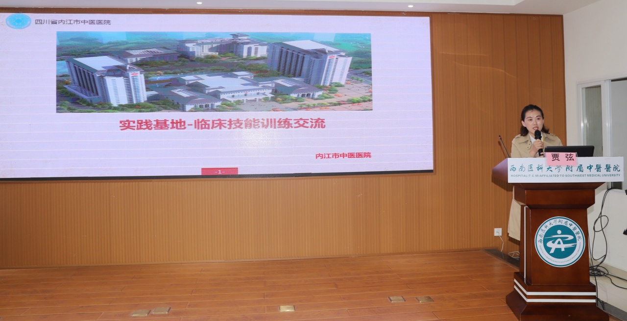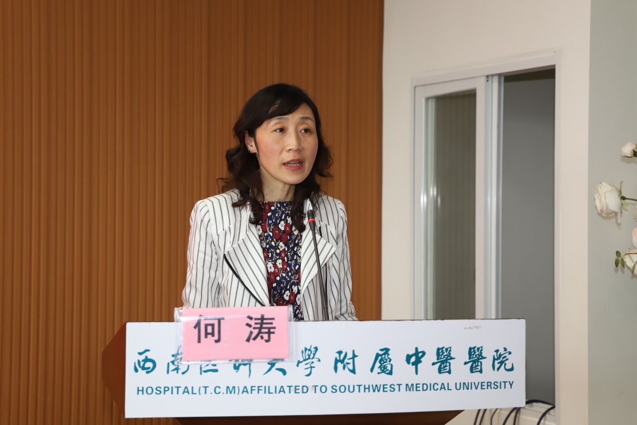 何涛讲话,她介绍了西南医科大学近年来在教学工作中取得的成绩,要求中西医结合学院要进一步加强与各实践教学基地的联系,凝聚共识,加强合作,共同努力,提升中西医临床教学质量,为教学基地建设提供良好的平台。
