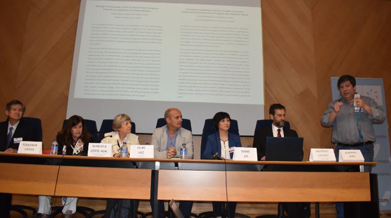 此次会议由我院中葡中医药国际合作中心会同米尼奥大学生物系(中葡药食植物资源研究中心)、分子和环境生物学中心、亚洲系、孔子学院、科英布拉大学孔子学院历时半年策划组织并如期举行。此次会议将进行为期1天的学术大会和圆桌会议、为期4天的中医药知识及应用培训。本次会议得到了我院中葡中心首席科学家、世界卫生组织传统医学顾问刘新民教授的策划指导、亲临组织大会并作学术报告及中药基础知识讲座。澳门大学Simon Lee、德国中医学会主席/海德堡中医学校校长/葡萄牙中医学会科学委员会主席亨利·约翰勒斯·葛瑞腾,塞图巴尔理工学院健康学院针灸专业本科负责人Diogo,科英布拉大学孔子学院黄在委院长、湖南省药食同源工程中心常务副主任谢梦洲教授等专家出席会议并作报告。