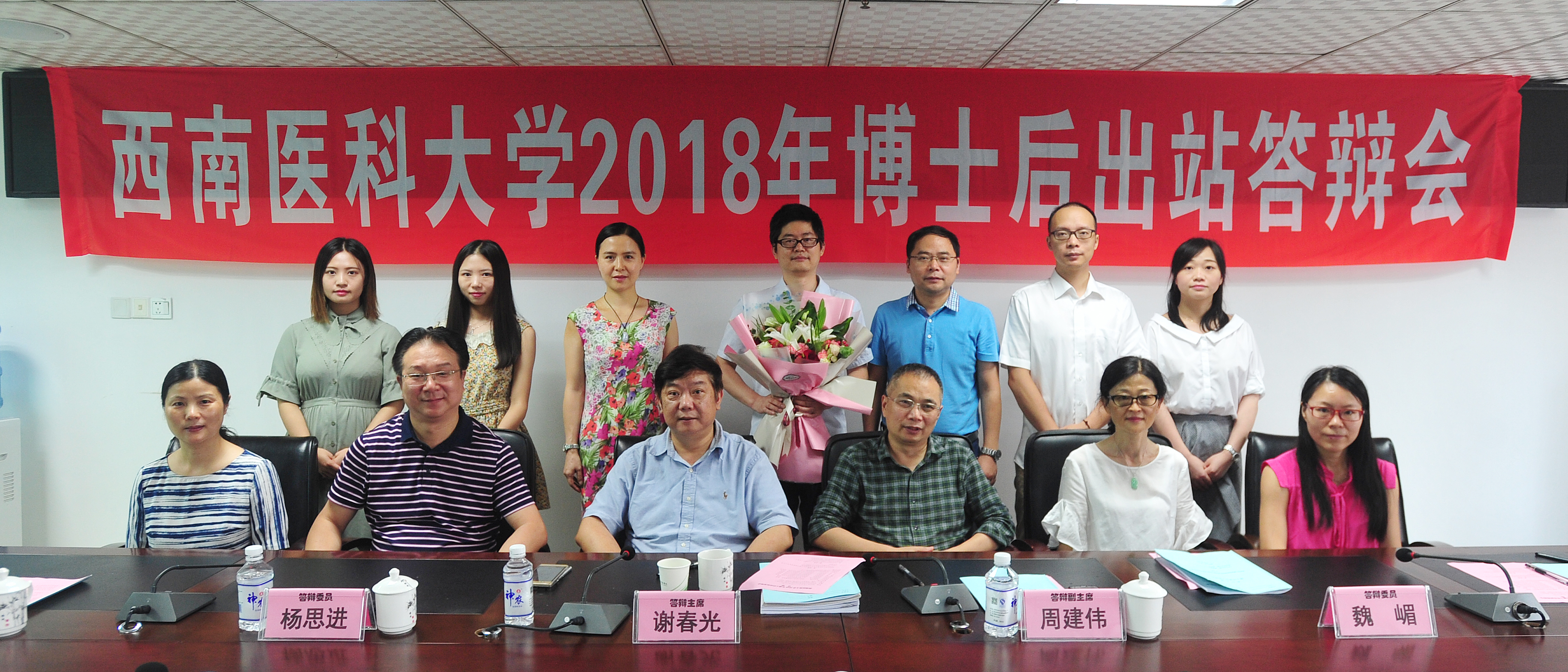 2018年7月14日,西南医科大学2018年博士后出站答辩会举行,成都中医药大学附属医院院长谢春光教授,四川省中医药科学院副院长周建伟教授等六位专家应邀担任评委。答辩会由我院副院长刘建主持。
