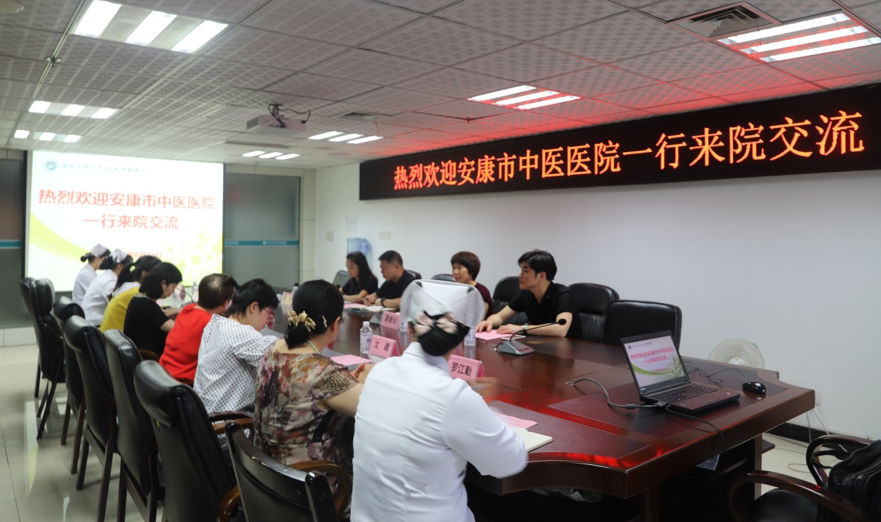 2019年6月14日,安康市中医医院一行5人来院交流,我院相关职能部门负责人及临床科室人员等参加了会议。