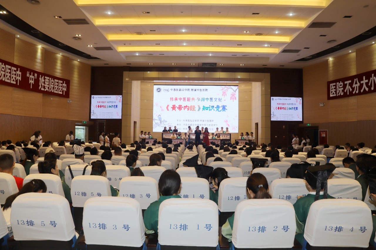 2019年5月25日,中西医结合学院·附属中医医院“传承中医经典·弘扬中医文化”《黄帝内经》知识竞赛举行。西南医科大学副校长何涛,发展规划处刘克林,教务处副处长郑小莉,学工部副部长谭群英,中西医结合学院·附属中医院党委书记王琳等领导,相关职能部门负责人,教研室主任、副主任,7支参赛队选手及部分学生代表200余人参加了活动。