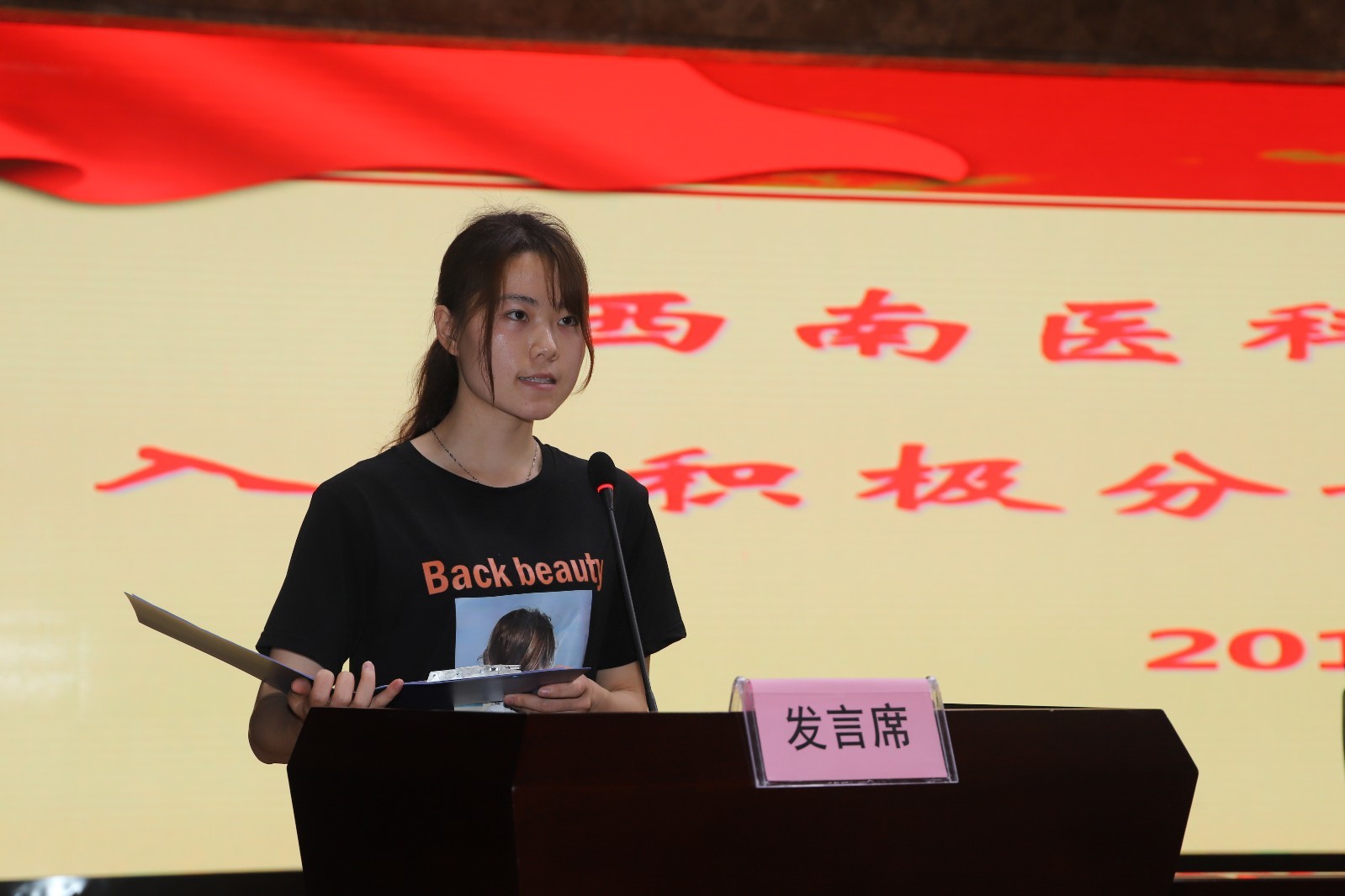 中西医结合学院2018级学生代表全体学员在开班典礼上发言。