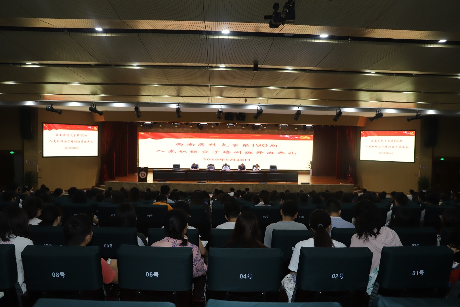 2019年5月18日,西南医科大学第190期入党积极分子培训班开班典礼在德诚楼学术报告厅隆重举行。中西医结合学院•附属中医医院党委书记、分党校校长王琳,党委副书记·纪委书记、分党校副校长赵国强,党校校务委员、送培系院辅导教师及447名入党积极分子参加了开班典礼。开班典礼由医院党委副书记·纪委书记、分党校副校长赵国强主持,开班典礼在雄壮的国歌声中拉开序幕。