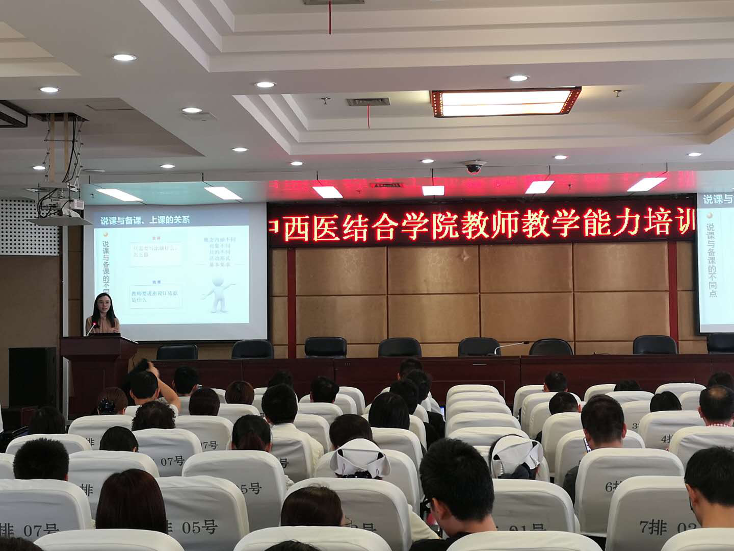 2019年5月21日,中西医结合学院开展教师说课培训讲座,我院党委书记王琳、副院长刘建、全体基础教师和临床教研室主任、副主任、秘书及其他骨干教师等70余名教师参加了培训。