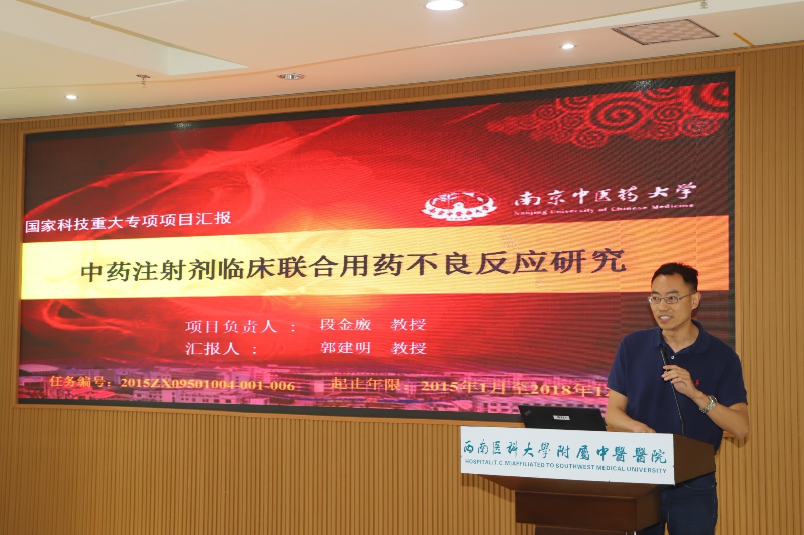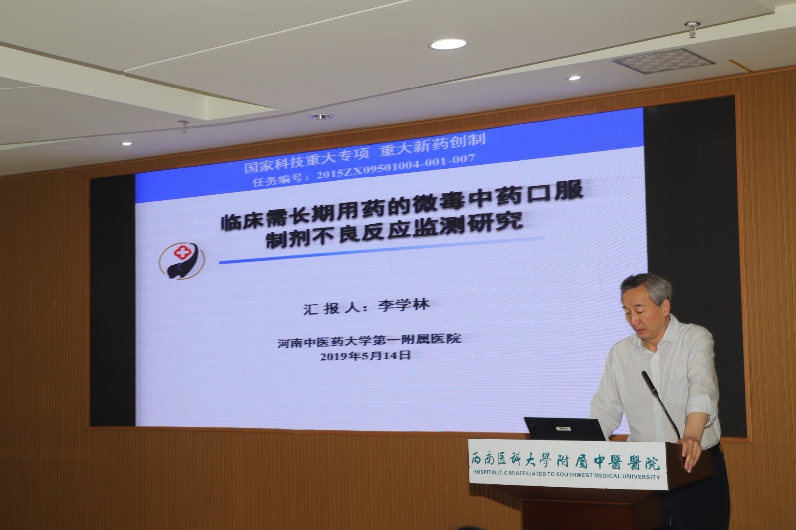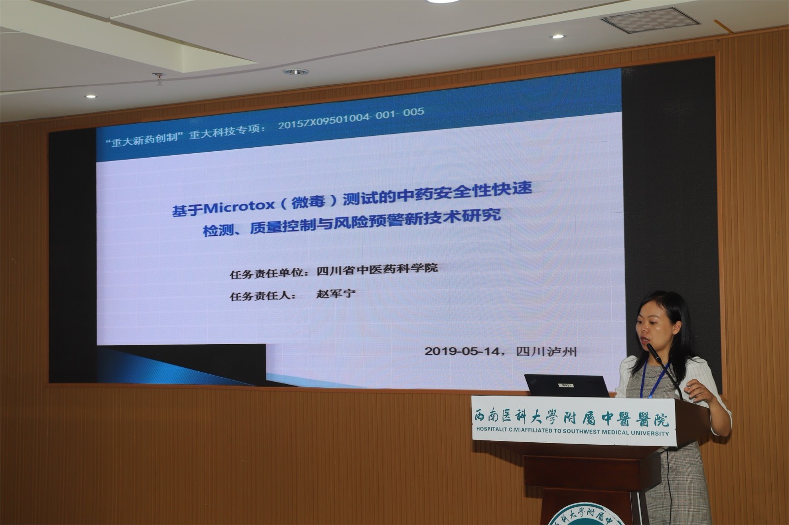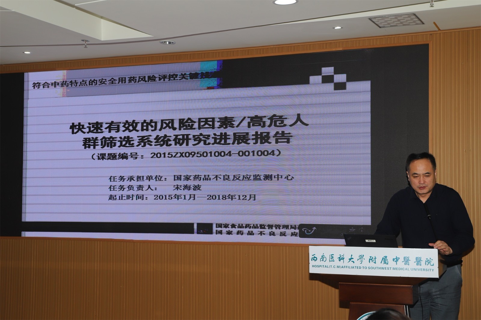 2019年5月14日,中药安全风险早期发现与控制关键技术研究课题进展汇报工作会在我院举行,国家药品监督管理局药品评价中心主任沈传勇,泸州市人民政府副市长马宗慧,我院领导及相关人员参加了会议。会议由泸州市人民政府市长助理李馨龄主持。