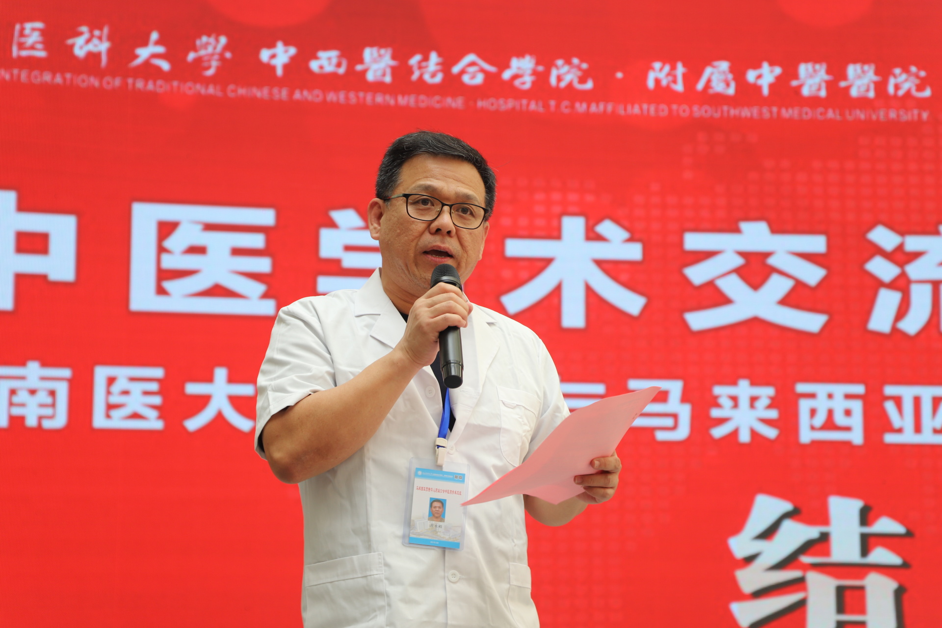 马来西亚雪隆华人公会代表黄永裕医师讲话,他代表马来西亚一行感谢我院领导及专家提供的指导和帮助,表示此次交流受益良多,希望双方今后能够进一步加强合作,助力中医药的传承和发扬。