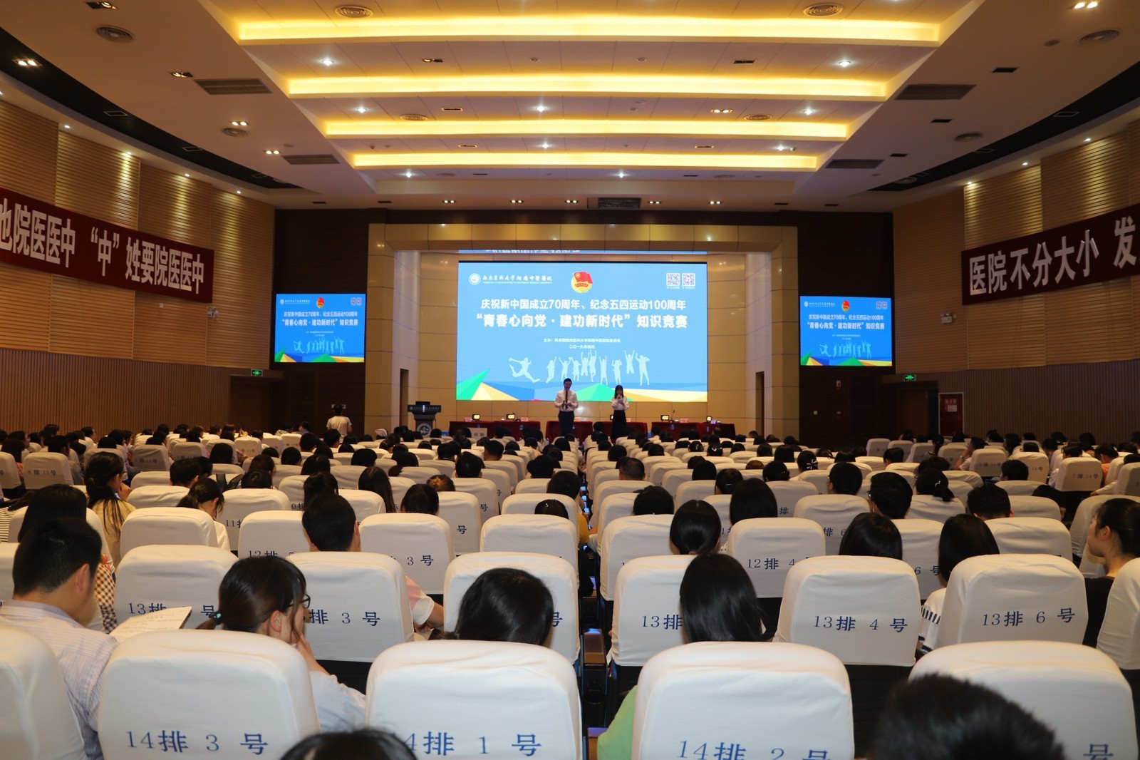 为庆祝新中国成立70周年,纪念五四运动100周年,2019年4月29日,我院团委在第二住院大楼学术演讲厅举行“青春心向党·建功新时代”知识竞赛,医院党委书记王琳等党政领导、部分职能部门负责人、团员青年代表共计300余人参加了本次活动。