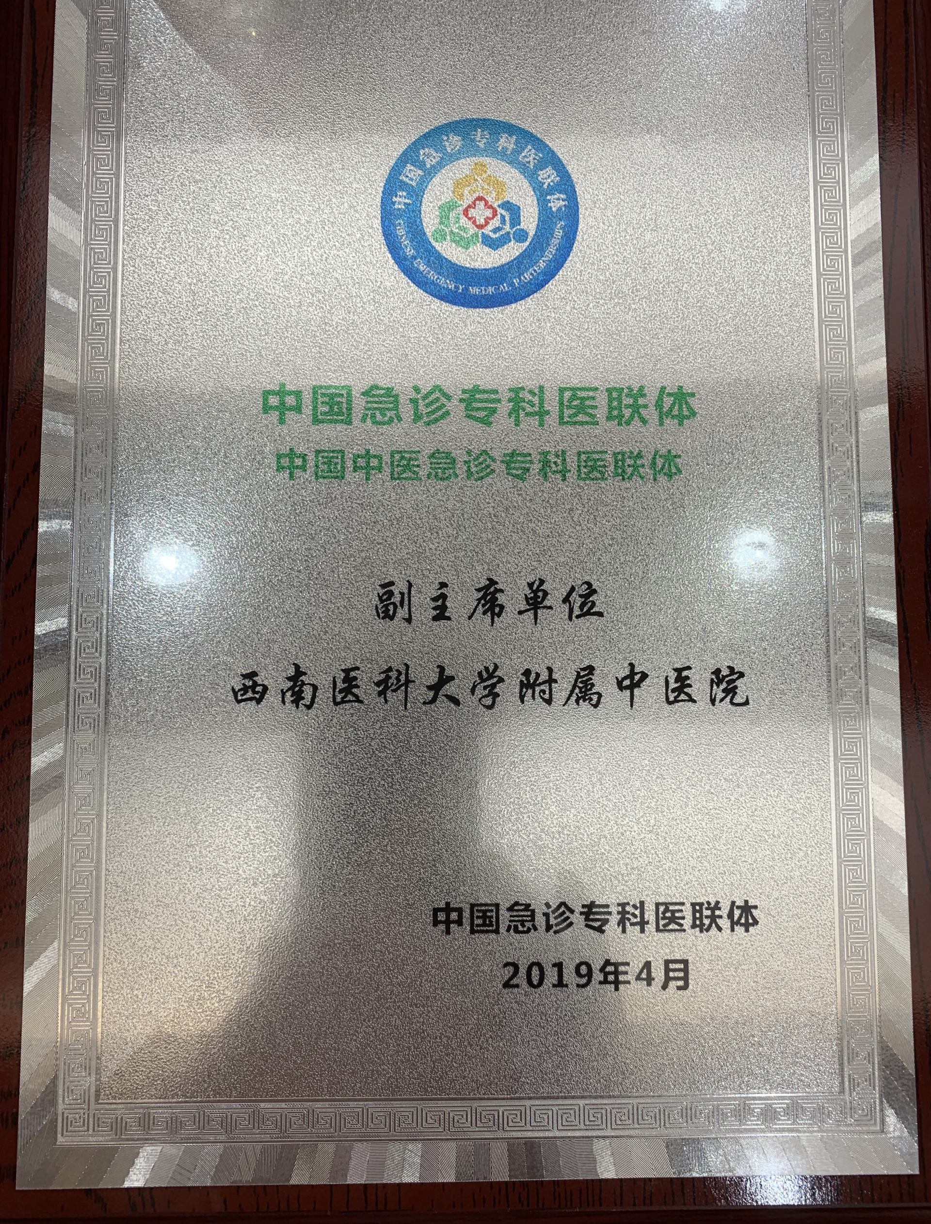 2019年4月27日,第六届世界中医药学会联合会急症专委会学术年会暨第六届国际中西医结合急救医学学术大会筹备会在甘肃兰州召开,我院获批“中国急诊专科医联体 中国中医急诊专科医联体 ”副主席单位,全省仅2家。