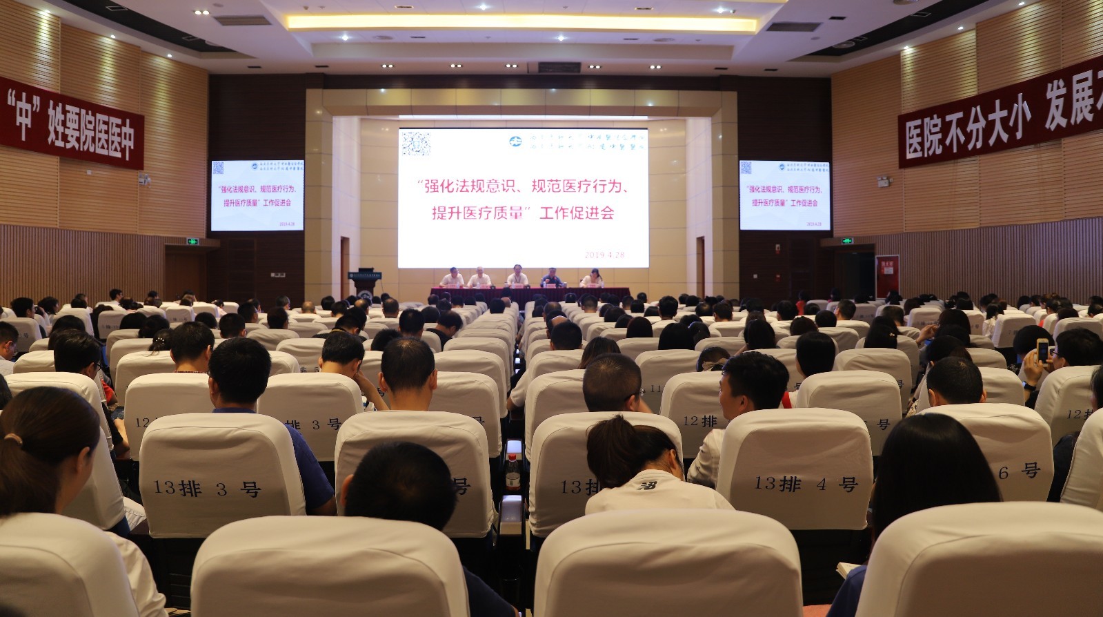 2019年4月28日,我院召开了2019年“强化法规意识 规范医疗行为 提升医疗质量”工作促进会。党委书记王琳等党政领导,行政职能部门负责人,临床、药剂及辅检部门科主任、副主任、主任助理、护士长、副护士长、护士长助理及全院医师、药技、辅检人员、规培医师等1000余人参加了会议,会议由党委副书记杨文信主持。