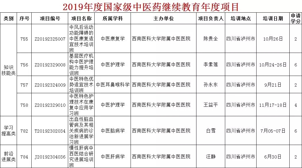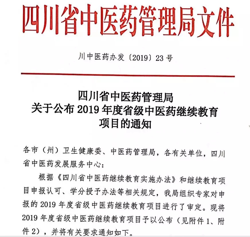 近日,国家中医药管理局、四川省中医药管理局公布了关于2019年度国家级、省级中医药继续教育项目的名单,我院中了37个。