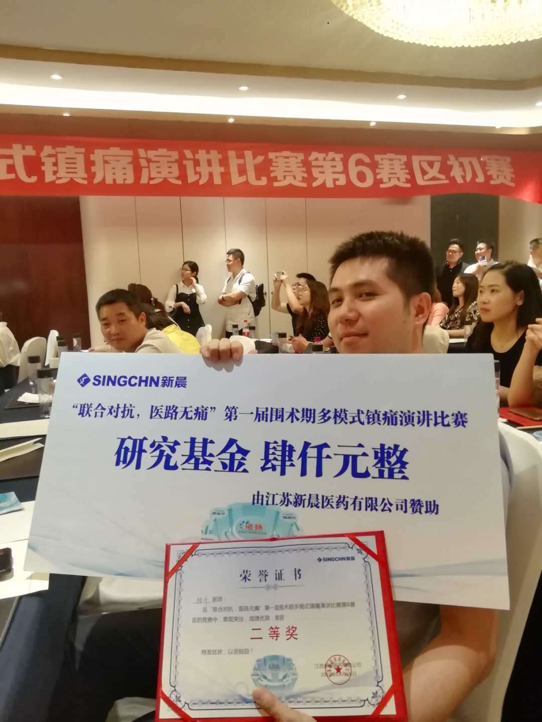 2019年4月26日,由四川省医师协会承办的“联合对抗 医路无痛”第一届围术期多模式镇痛演讲比赛初赛在成都举行,我院麻醉科医师陈齐荣获二等奖。