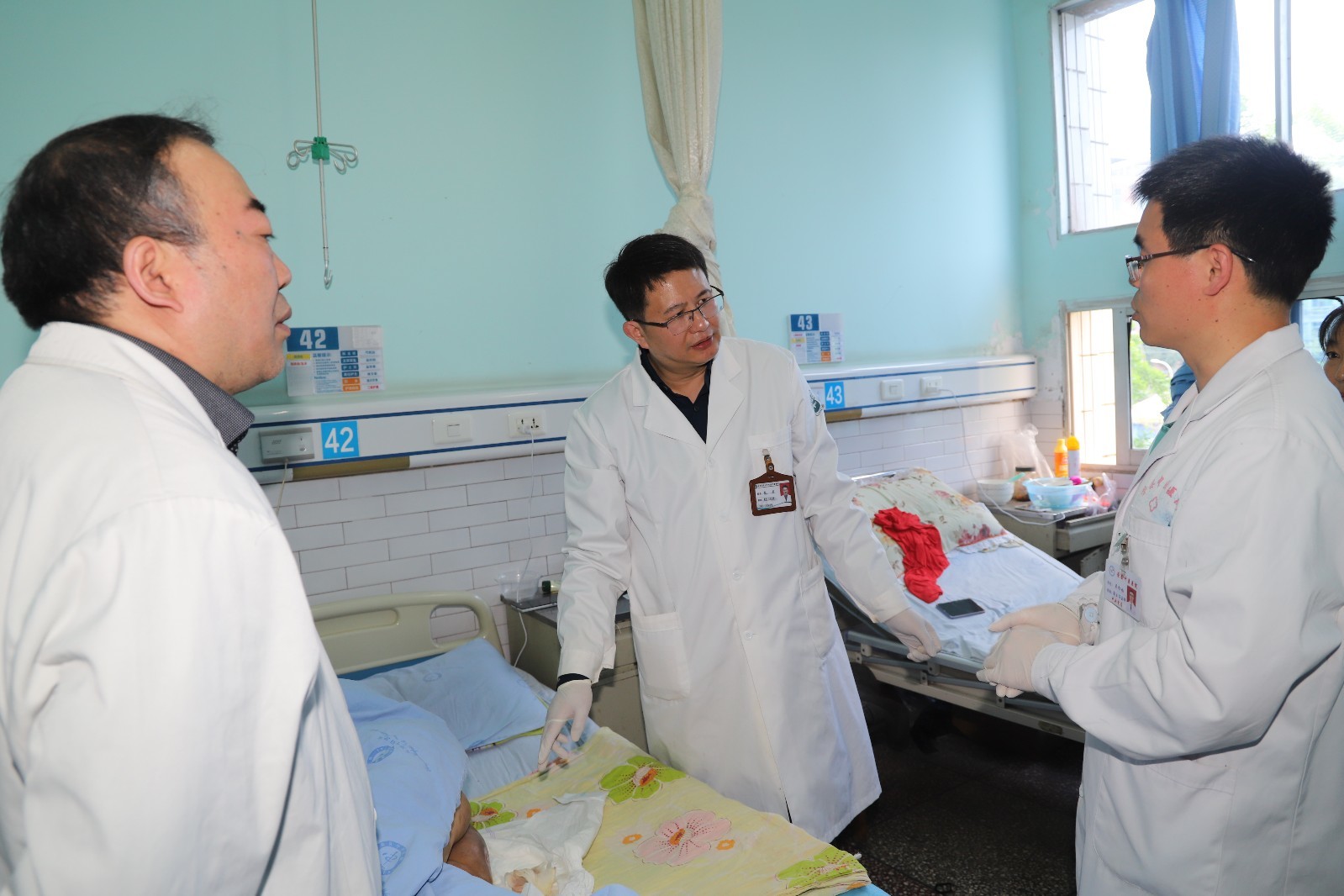 呼吸内科主治医师何胜东(右二)开展疑难病例查房