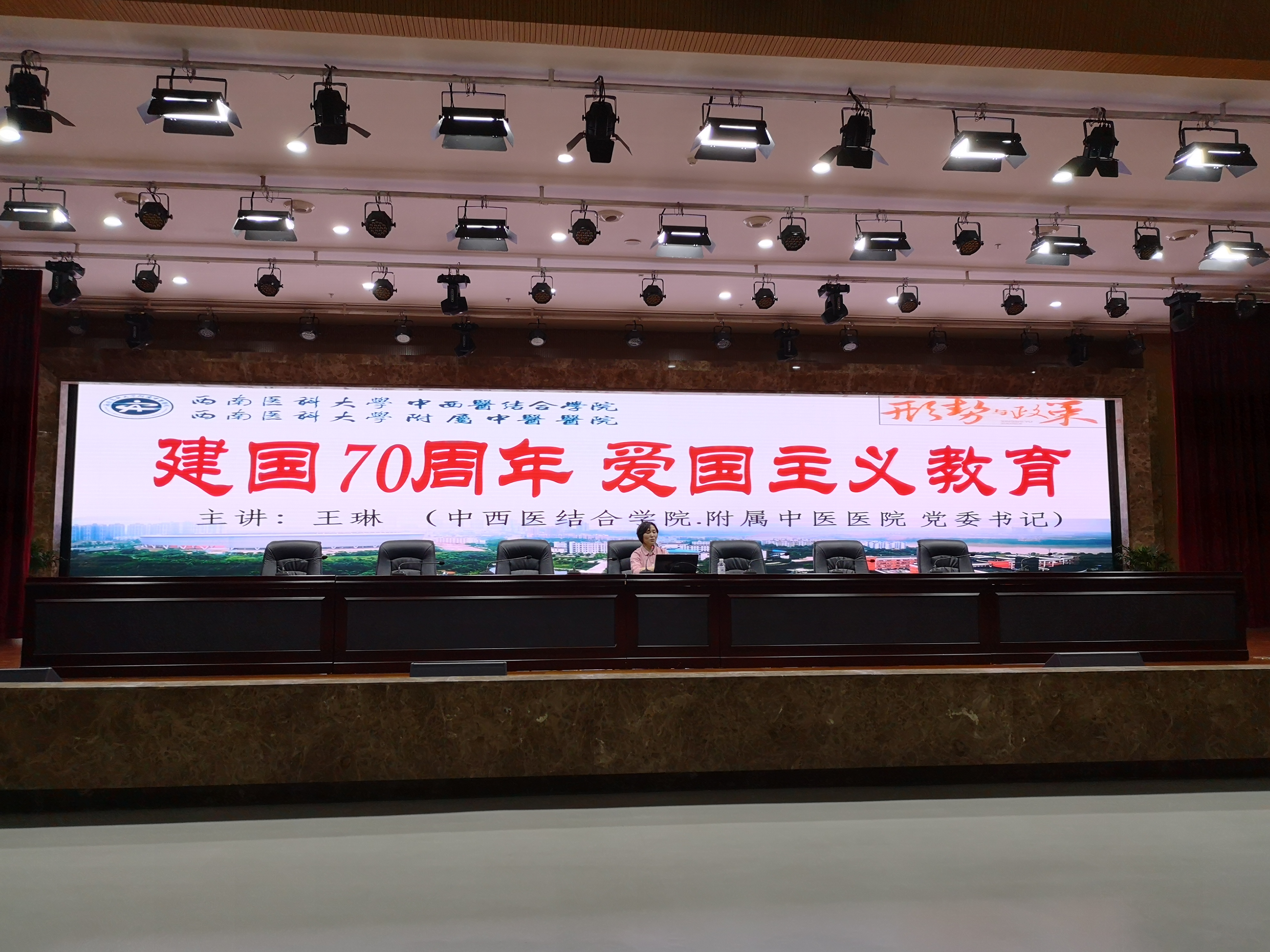会上,王琳作了《峥嵘70载 与国同行》专题讲座,她以“建国70周年 爱国主义教育”为主题,从峥嵘70载和与国“医”路同行等方面结合自身体会,为同学们讲解了新中国成立70周年来的发展与变化。