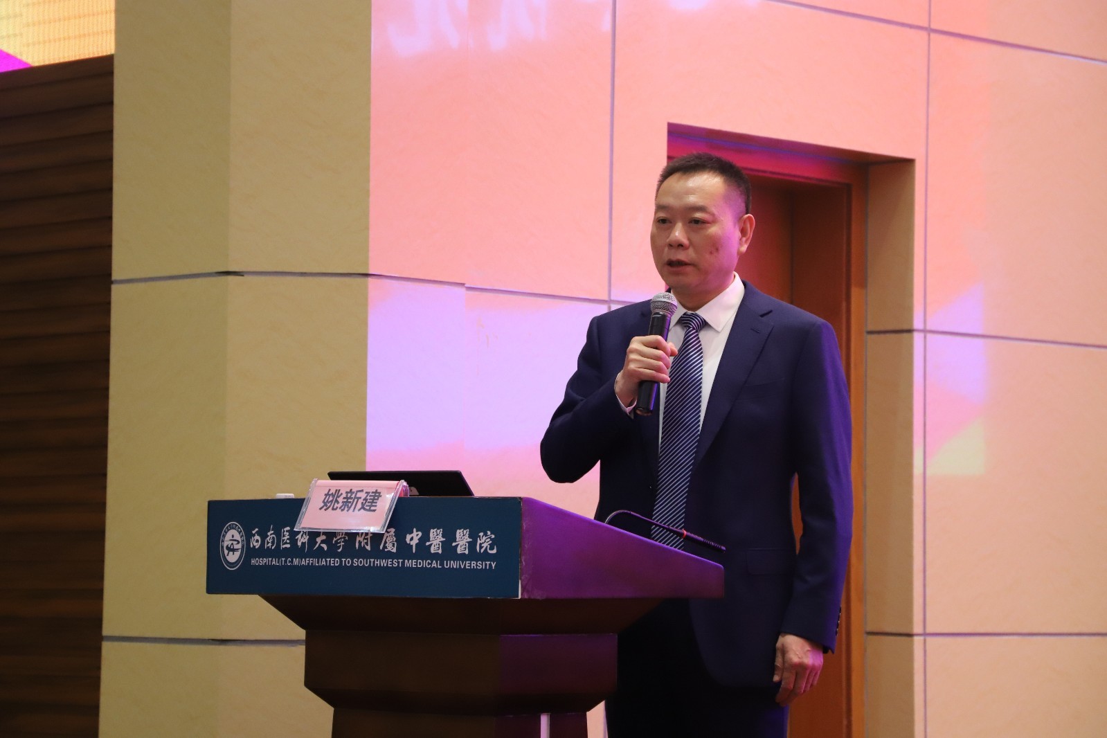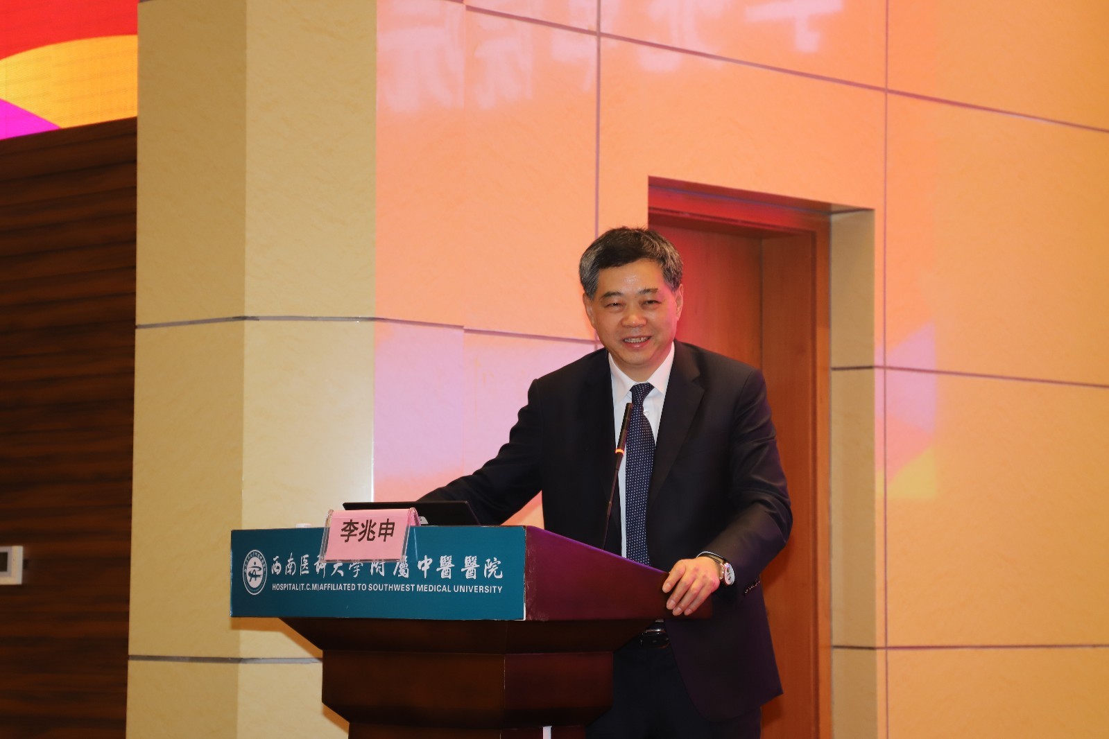李兆申讲话,他表示很高兴加入西南医科大学中西医结合学院·附属中医医院团队,今后将带领团队瞄准泸州乃至西南地区人民的健康需求,进一步加强人才培养和学科建设,对消化道疾病进行专科技术的传授,积极开展相关学术交流,为消化疾病患者的健康提供技术保障和服务。