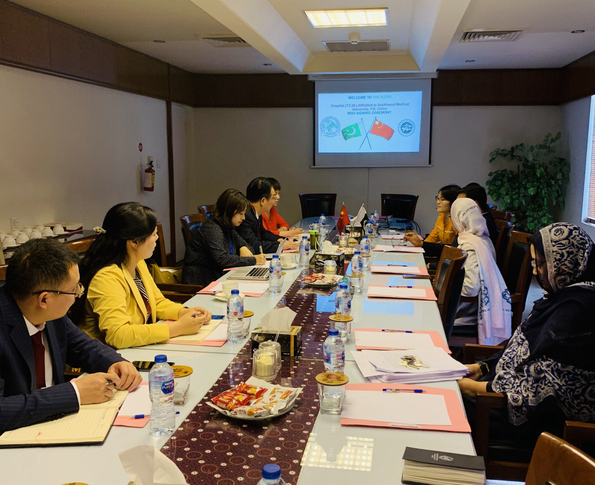 会上,双方以在卡拉奇大学建立“ICCBS中医中心”为主题,紧密围绕双方医疗合作、人才培养、科学研究、学术交流和产品研发等方面进行了深入交流,并就中医医师在巴执业问题、中药产品在巴的注册、联合开展科学研究及培养研究生、共同举办中巴年度学术研讨会等问题进行了探讨并达成了初步共识。
