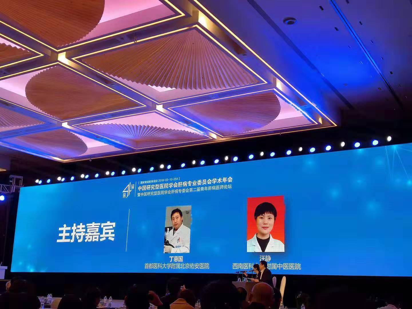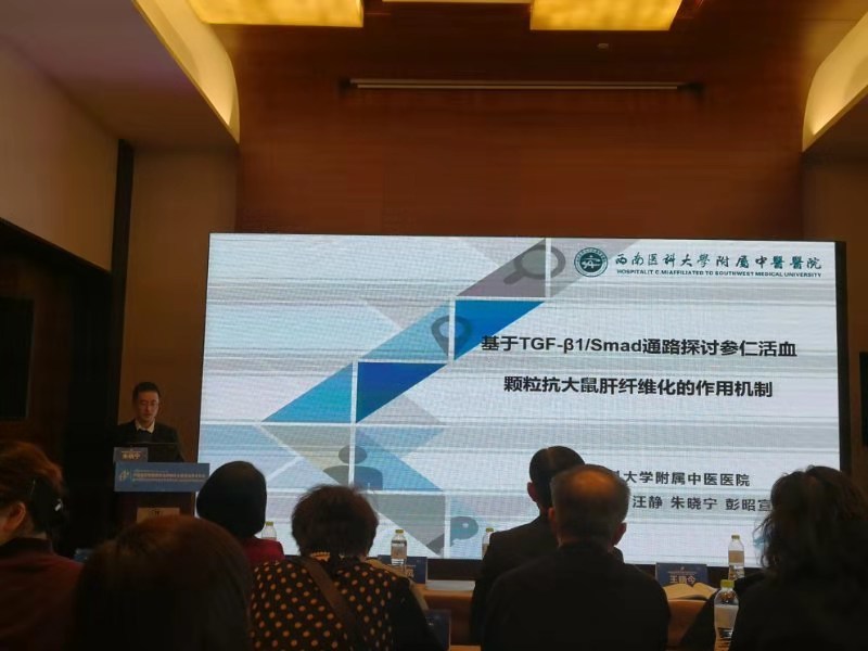会上,汪静教授受邀担任主持嘉宾,肝胆病科朱晓宁主治医师当选为首届中国研究型医院学会肝病专业委员会肝癌学组委员,彭昭宣主治医师在病毒性肝炎与肝纤维化分论坛作了《基于TGF-β1/smad通路探讨参仁活血颗粒抗大鼠肝纤维化的初步研究》报告。