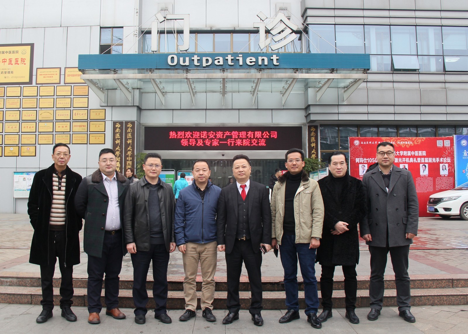 2019年2月22日,诺安资产管理有限公司董事长杨文一行来院交流,来宾们在西南医科大学校长办公室主任代天祥、我院副院长李志等陪同下参观了医院门诊大厅、特需门诊、中医药文化·院史博物馆和医学美容中心等地。