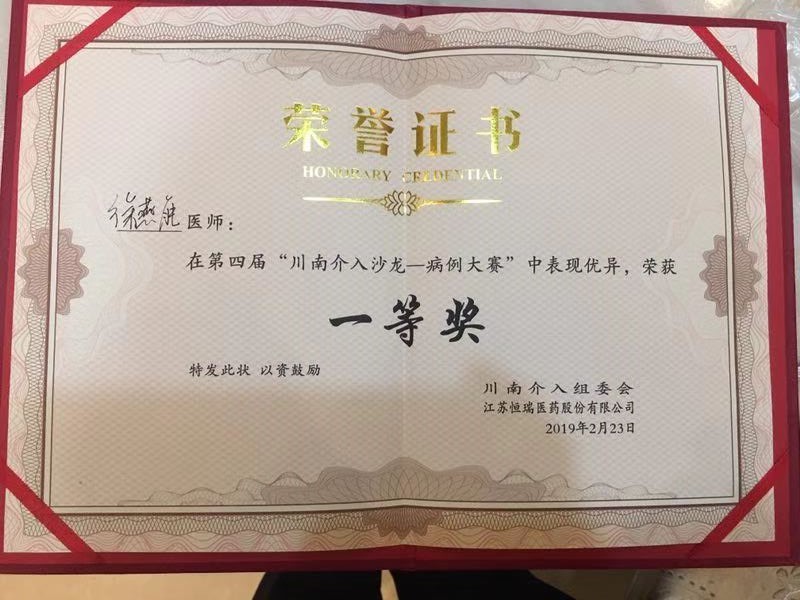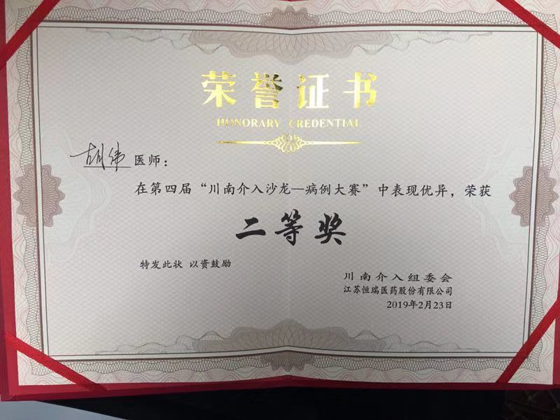 2019年2月23日,第四届川南介入沙龙——病例大赛在自贡举行,我院介入诊疗室徐燕能、胡伟参加比赛分别荣获一等奖、二等奖。