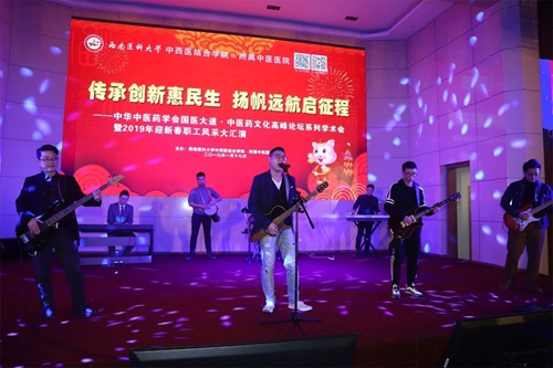 演出现场 2019年1月17日,西南医科大学中西医结合学院·附属中医医院2019年迎新春职工风采大汇演火热开场。中国中医药信息研究会会长吴刚,西南医科大学党委书记廖斌及学校二级院系领导,医院党委书记王琳等党政领导,离退休老领导、老专家,医院职工及各分院、集团医院代表500余人参加了此次活动。