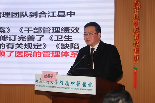 西南医科大学附属中医医院院长助理、合江分院院长徐厚平主持会议并作帮扶经验分享