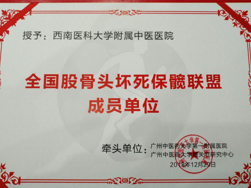 近日,2018中西医结合诊治髋关节疾病论坛及全国股骨头坏死保髋联盟成立大会在广州召开,我院骨伤科(创伤组)成功加入“全国股骨头坏死保髋联盟”并授牌。